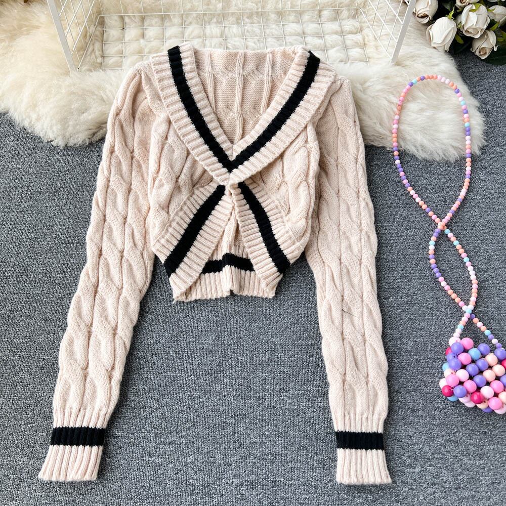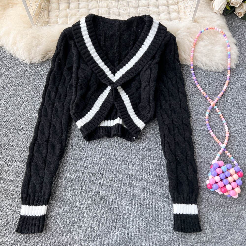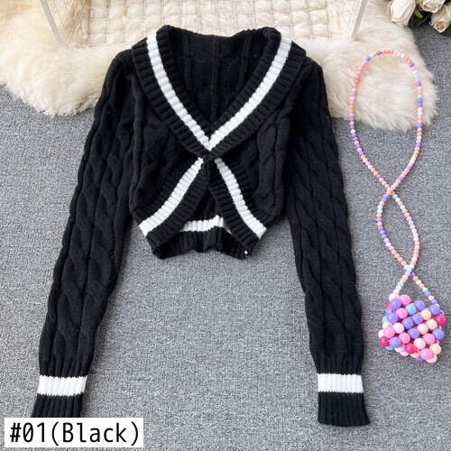 ノミクマ ヒットカラー Vネック プルオーバー クロップセーター 長袖 秋冬 ニット 2022年 プル ロング オータム 秋物 ウィンター 冬物 kor47480551383