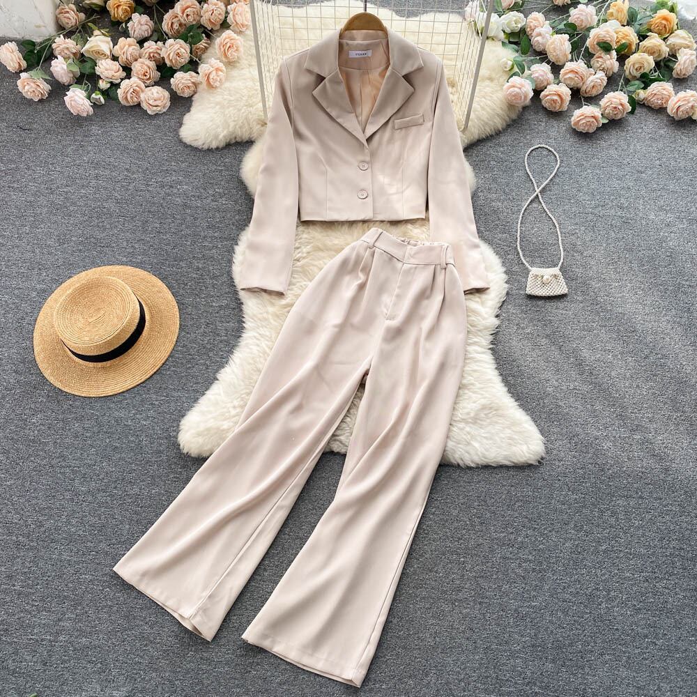 Nomikuma 因果スーツセット女性秋長袖ノッチ襟ショートブレザー + ウエストワイドレッグロングパンツ オータム 秋物 ワイドパンツ kor70876020125