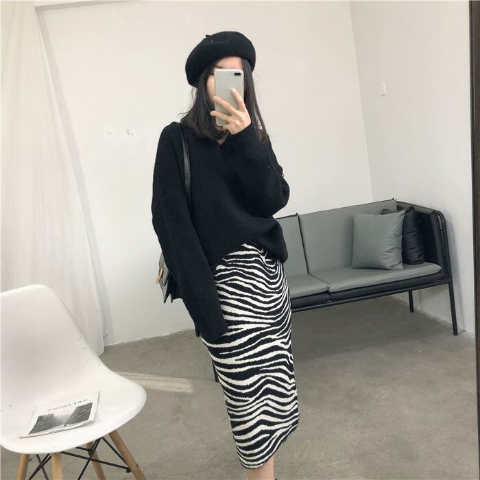 ノミクマ ウエストニットスカート ヒットカラー ストライプ 秋冬 スリム スプリット ワンステップ セータースカート 2022 ボトムス オータム 秋物 ウィンター 冬物 kor83631492819