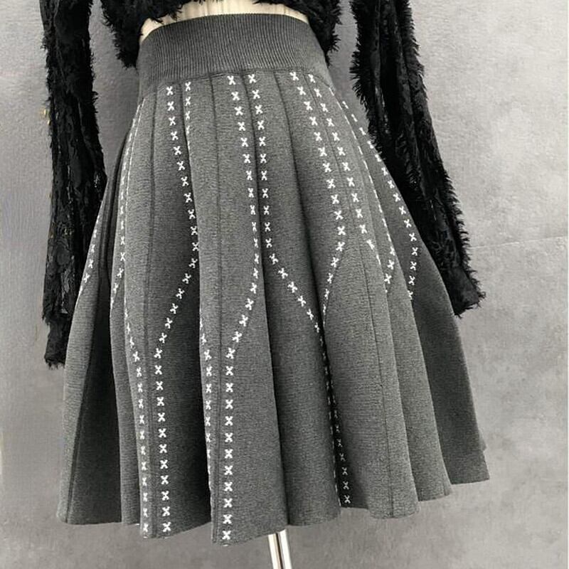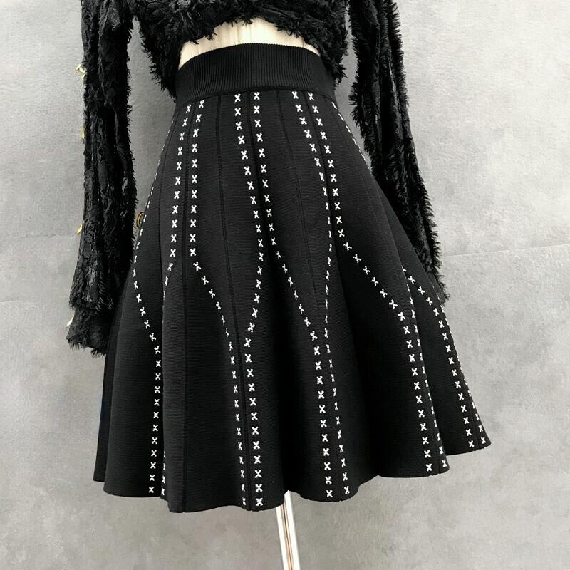 Nomikuma Faldas Moda 2021 秋 Iwnter セーター スカート コントラスト カラー ウエスト A ライン ニット スカート 6Z839 オータム 秋物 Aライン kor97833842216