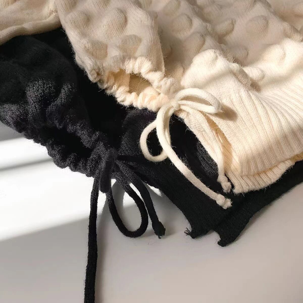Nomikuma 2022 秋冬不規則なレースアップショートセーター女性甘いニットトップス因果プルオーバーニット 大人ガーリー スウィート キュート カジュアル オータム 秋物 ウィンター 冬物 kor74480383642