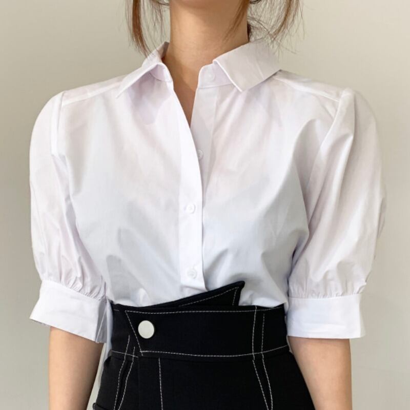 Nomikuma Causal Short Women Blouse Back イレギュラー プリーツ パフ スリーブ ターンダウン カラー シャツ 6H003 ショート ブラウス kor80945493856