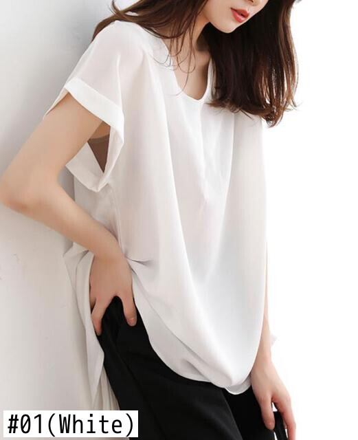 Nomikuma 2022 因果ひだパッチワークブラウス半袖 V ネックシフォントップス女性デモーダ ショート ハーフスリーブ Vネック kor4892559370