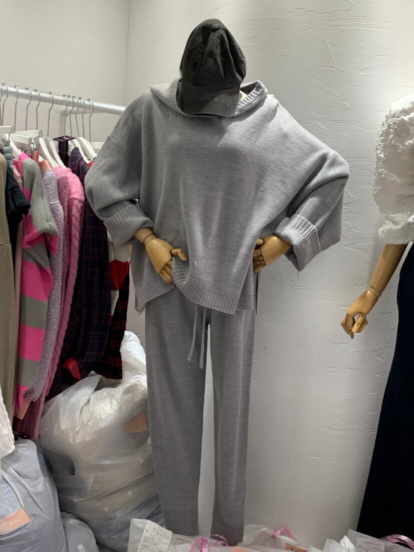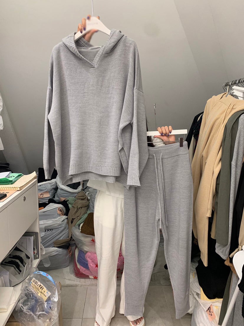 Nomikuma ニット 2点セット レディース 衣装 2022 長袖 フード付きセーター プルオーバー + レースアップ ウエスト ハーレム ロングパンツ kor55482365313