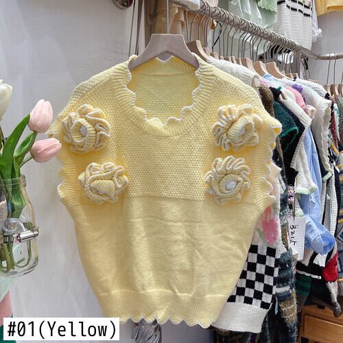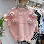 Nomikuma 2022 秋冬 3D ローズフラワーセーターベスト女性シックな甘い O ネックニットプルオーバー因果ニット 大人ガーリー スウィート キュート カジュアル オータム 秋物 ウィンター 冬物 Oネック フラワーデザイン kor58327243994