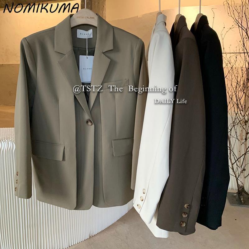 ノミクマノミクマノッチカラーブレザーコート因果長袖無地ブレザー2022秋スーツジャケット ロング オータム 秋物 ソリッドカラー kor95091024806