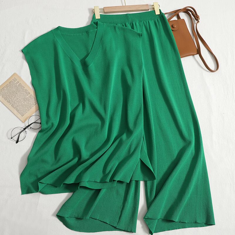 Nomikuma ニットセット女性 2022 春夏衣装ノースリーブ V ネックプルオーバーニット + ウエストワイドレッグパンツ スプリング 春物 サマー 夏物 Vネック ワイドパンツ kor36657109608