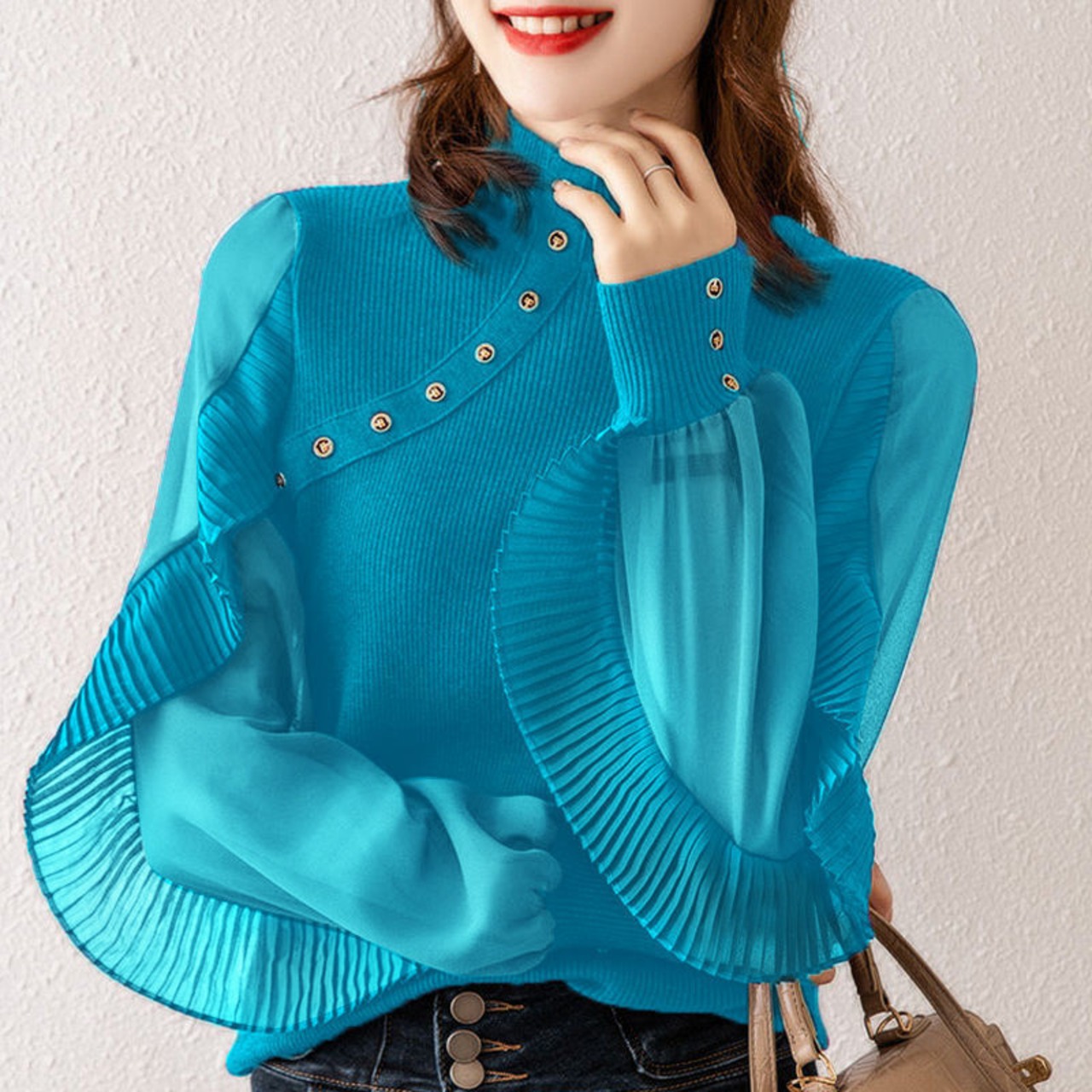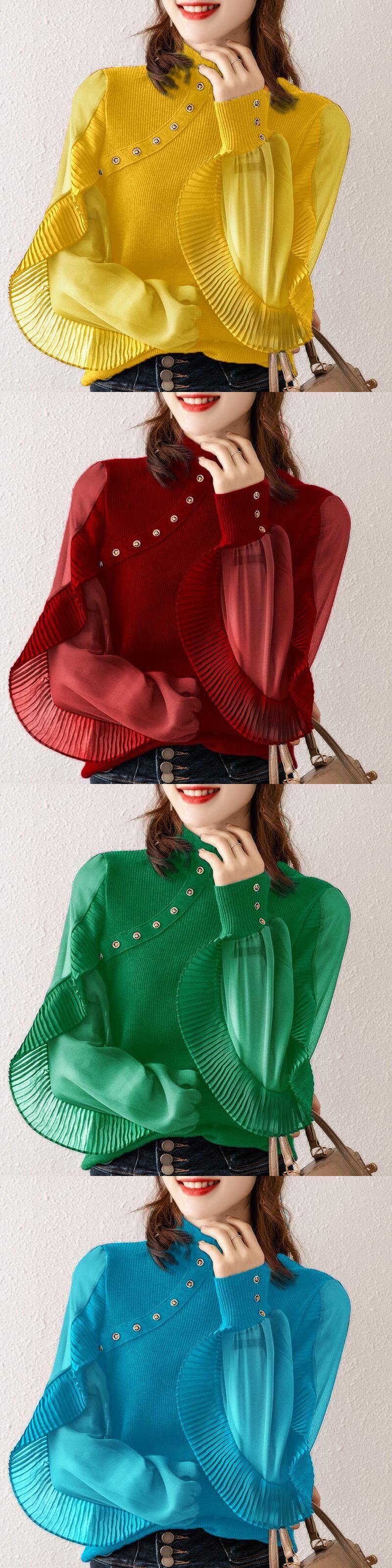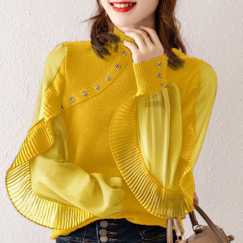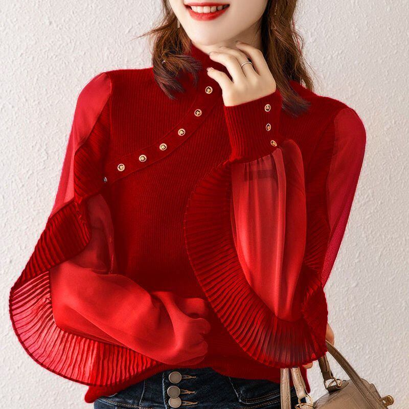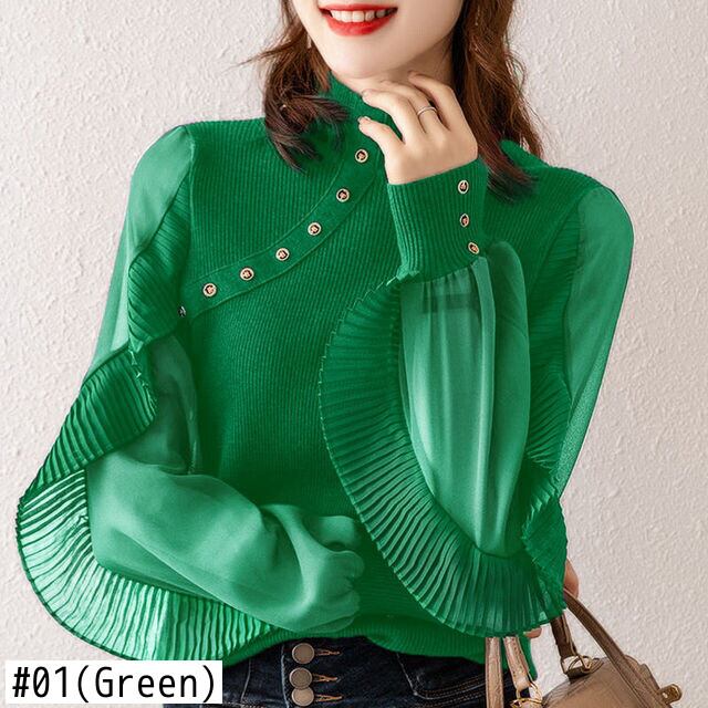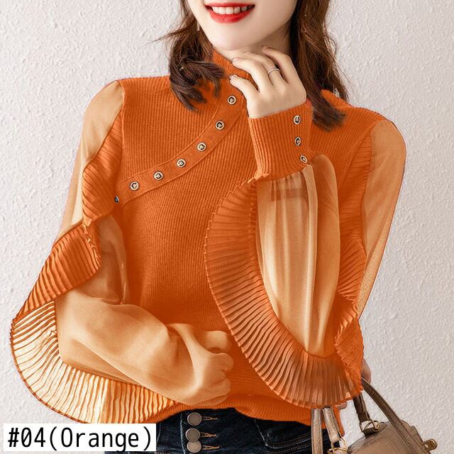 Nomikuma 女性 2022 秋冬ニットセーターシックなフリルランタンスリーブハーフカラーニットプルオーバー オータム 秋物 ウィンター 冬物 kor30927195891