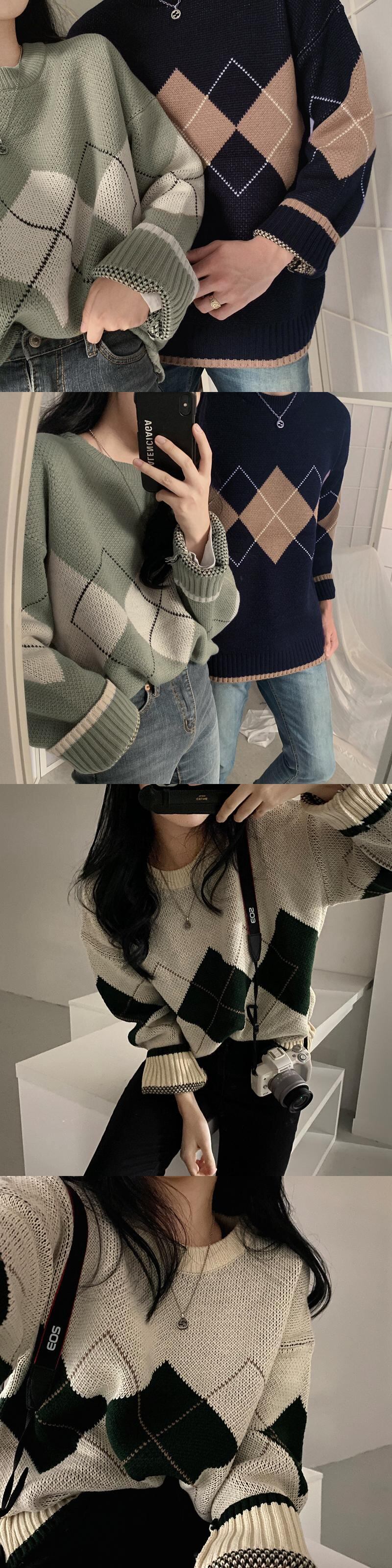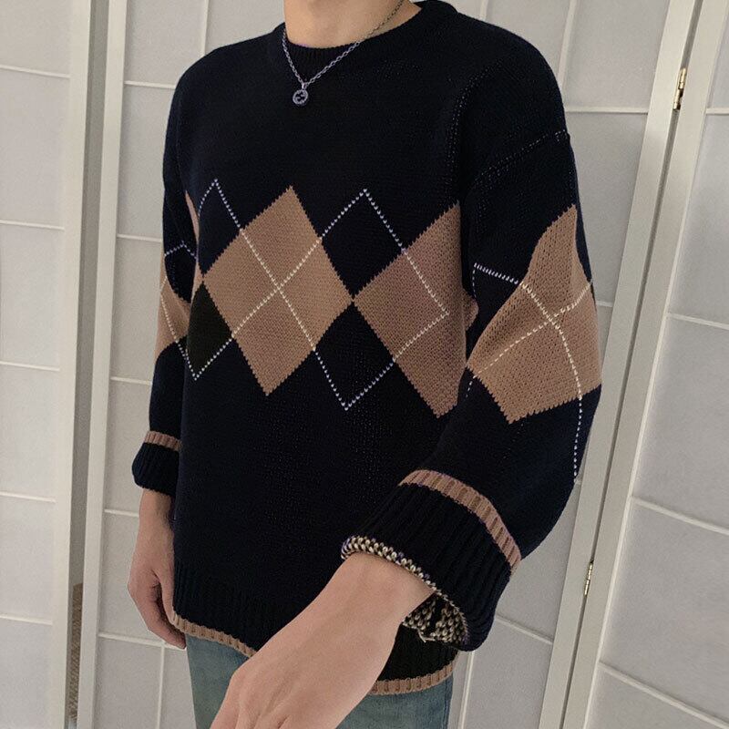 Nomikuma ヒットカラーアーガイルニットセーター女性シックな秋冬プル因果 O ネックプルオーバーニット オータム 秋物 ウィンター 冬物 Oネック kor87971163554