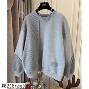 Nomikuma 2022 秋冬パッチワークスウェット因果長袖 O ネック女性ジャンパープルオーバーパーカー ロング シャツ オータム 秋物 ウィンター 冬物 Oネック kor20399221737
