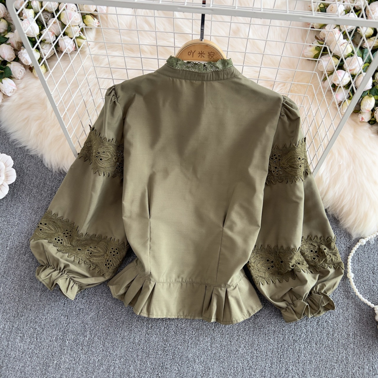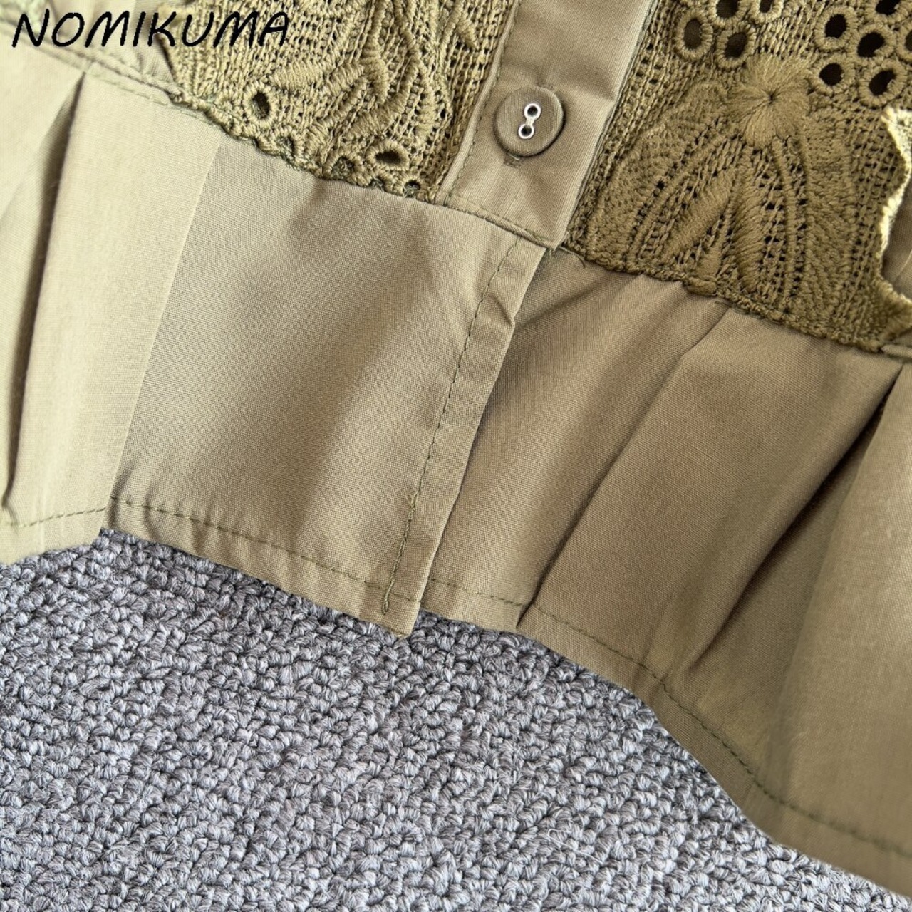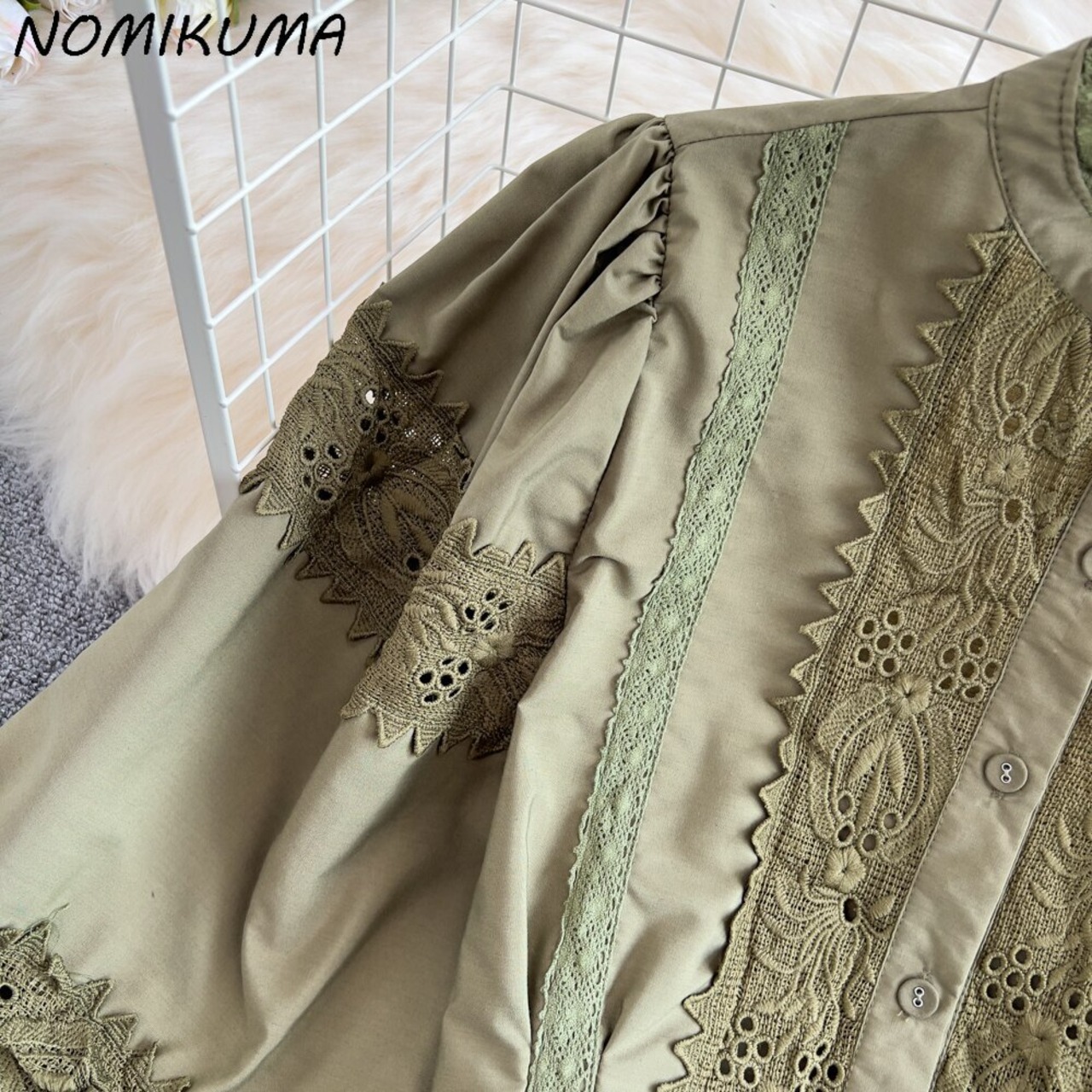 ノミクマ スタンドネック シングルブレスト ブラウス シャツ シック レース パッチワーク ラテインスリーブ レディース トップス 2022 kor96195066874