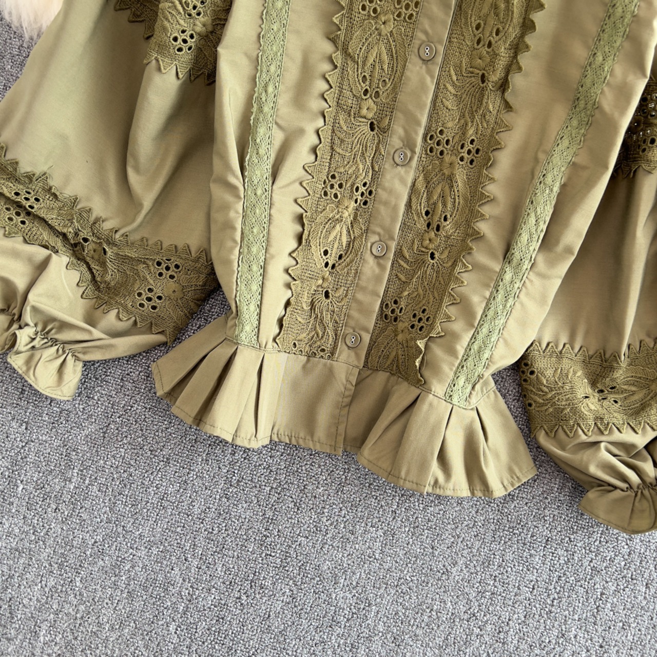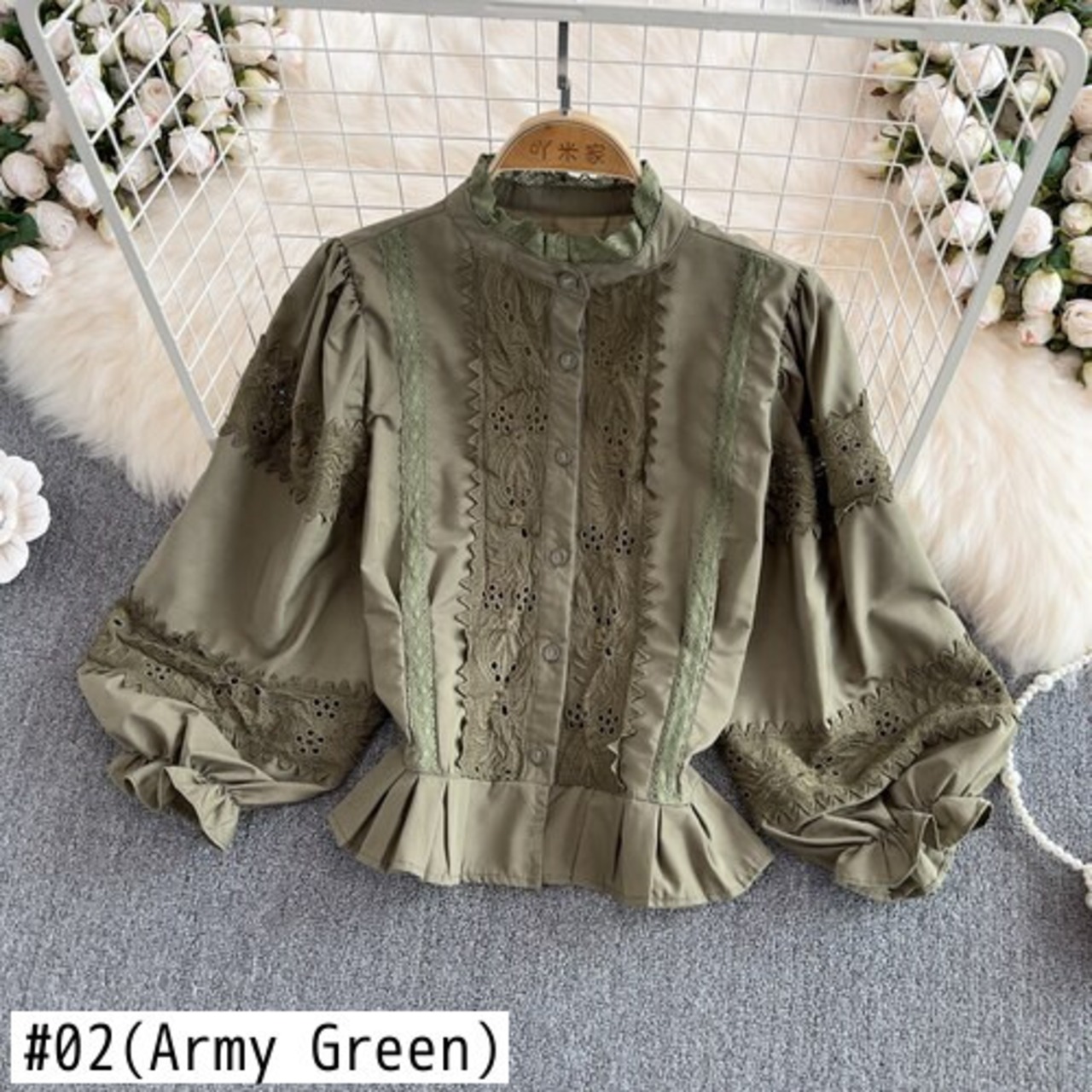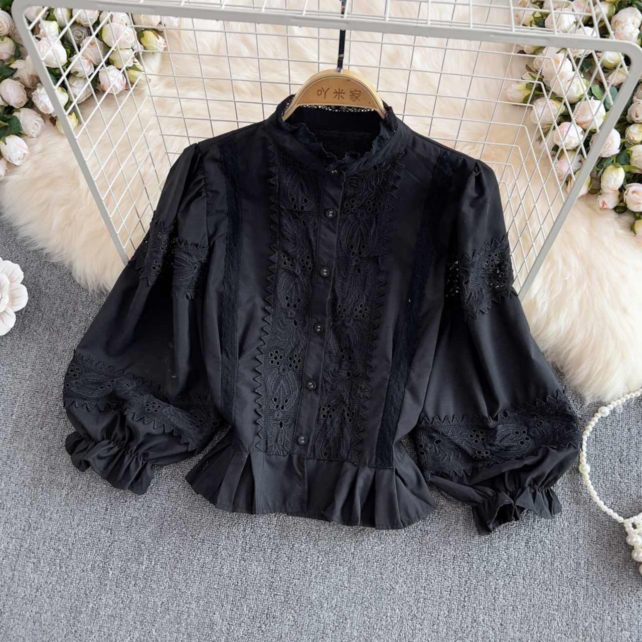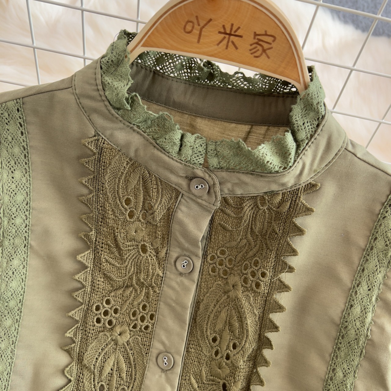 ノミクマ スタンドネック シングルブレスト ブラウス シャツ シック レース パッチワーク ラテインスリーブ レディース トップス 2022 kor96195066874