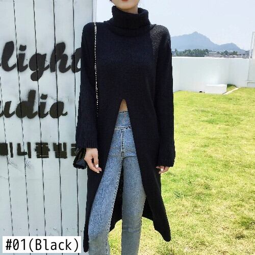 Nomikuma タートルネックスプリットロングプルオーバーニット女性 2022 秋冬女性セーター因果ソリッドニットトップス オータム 秋物 ウィンター 冬物 ソリッドカラー kor37722196738