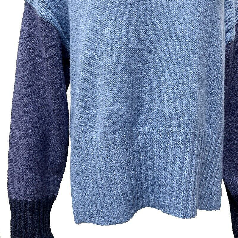Nomikuma プル秋冬ハーフタートルネックパッチワーク長袖女性セーター 2022 因果ニットトップス ロング オータム 秋物 ウィンター 冬物 kor77154018025