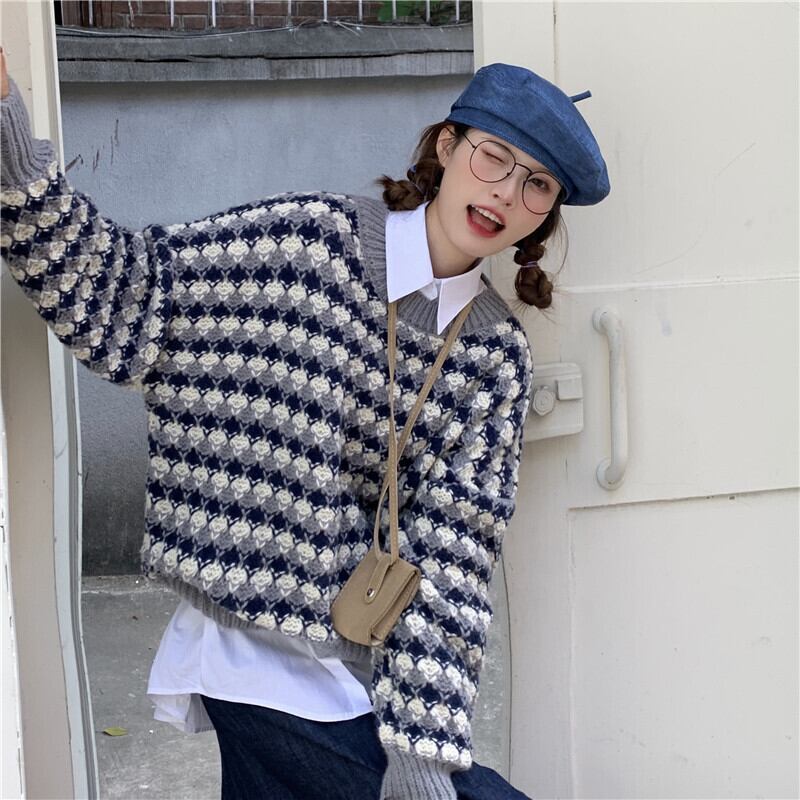 ノミクマ プル ヒットカラー ストライプ プルオーバー ニット カジュアル 秋冬 長袖 Oネック ニット セーター トップス ロング オータム 秋物 ウィンター 冬物 kor4007522404