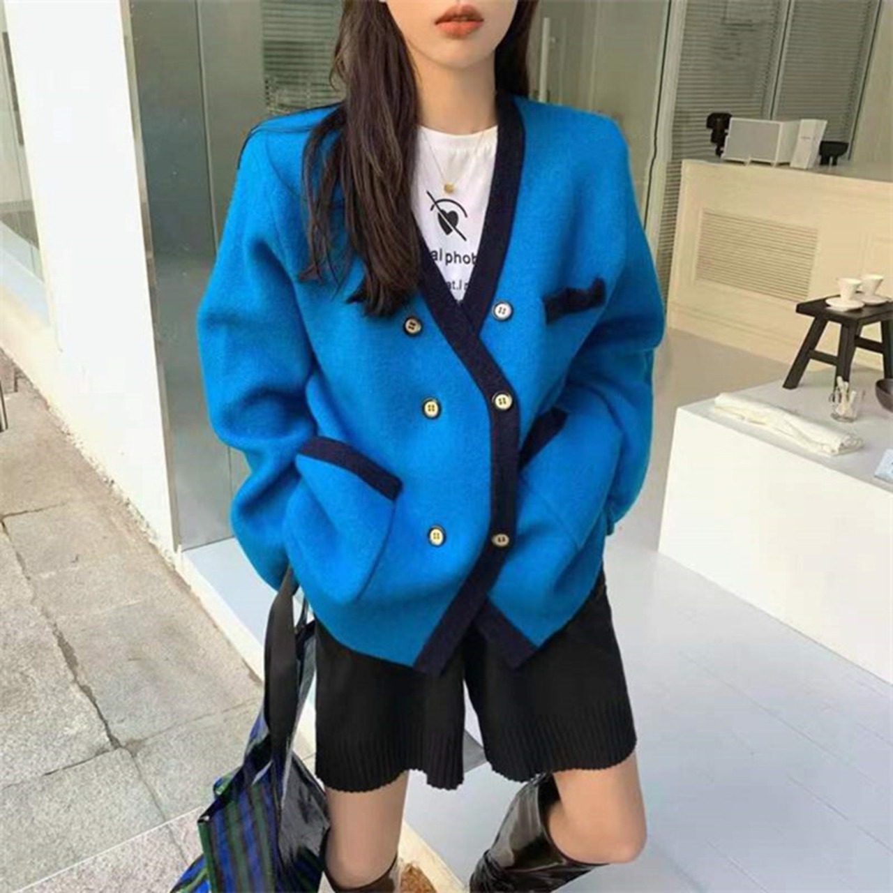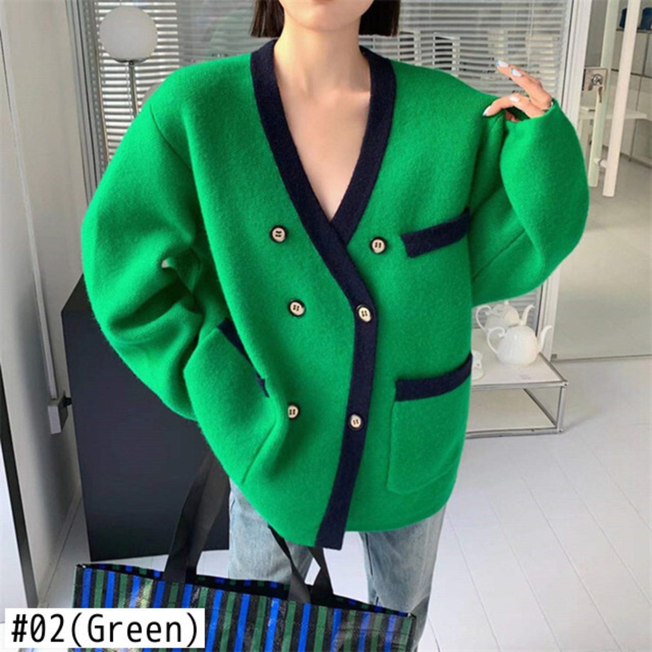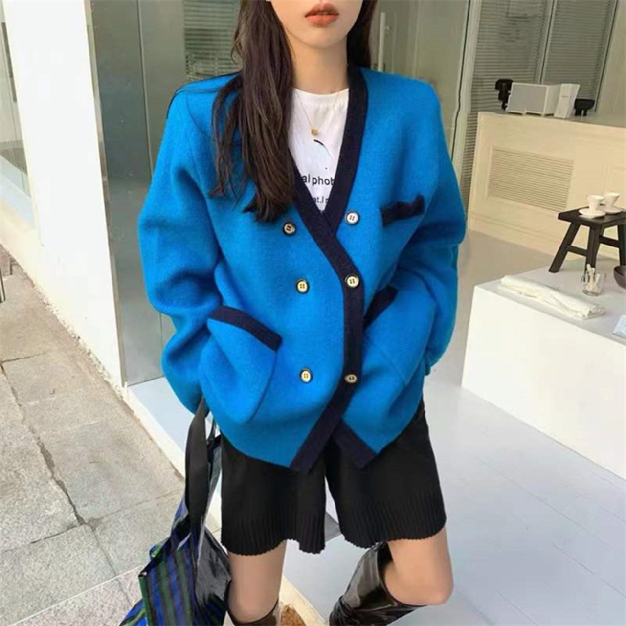 Nomikuma ダブルブレストセーターコート女性ヒットカラー長袖 V ネックニットカーディガン 2022 秋冬ニットトップス ロング オータム 秋物 ウィンター 冬物 Vネック kor83227983453