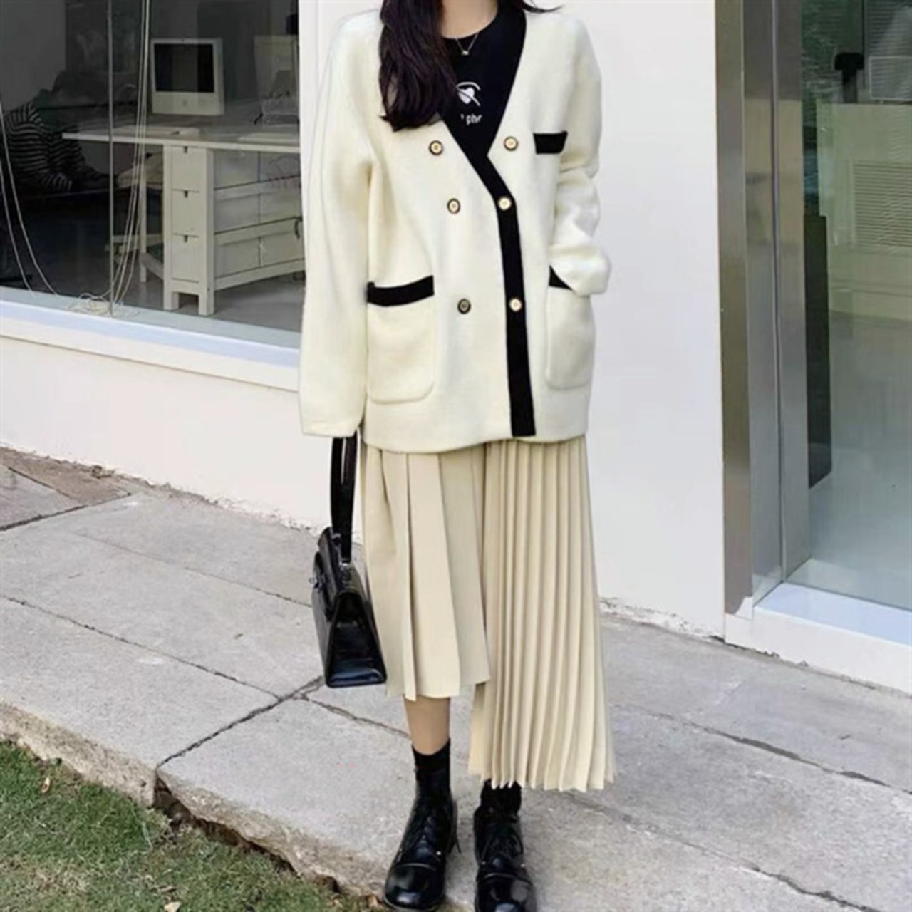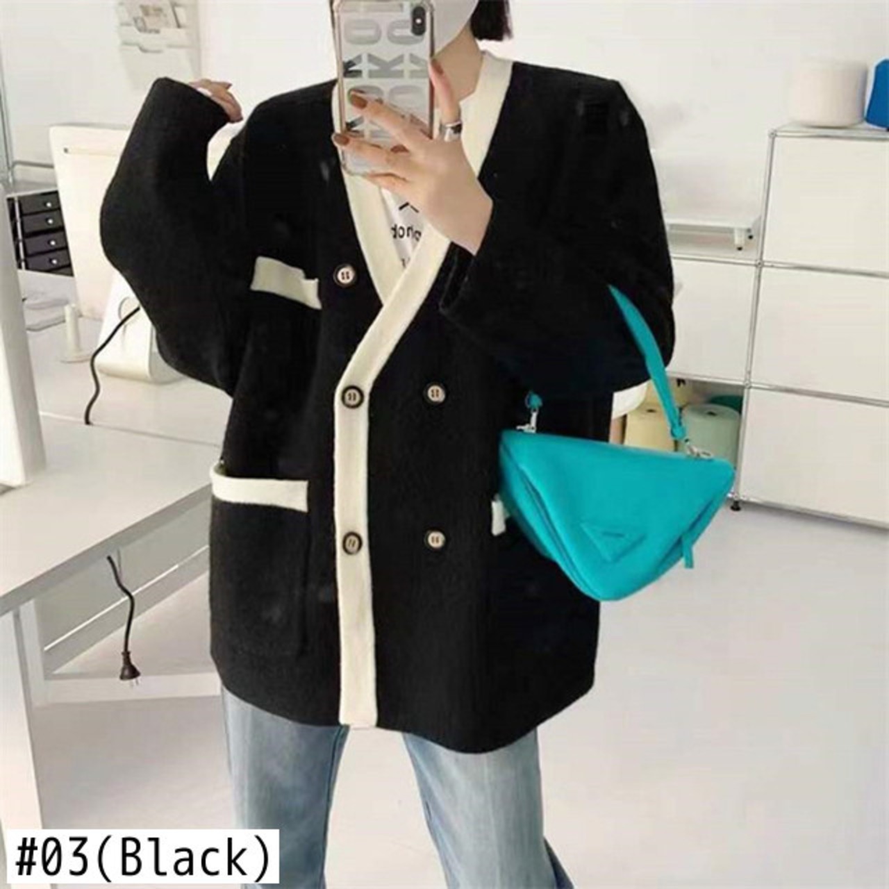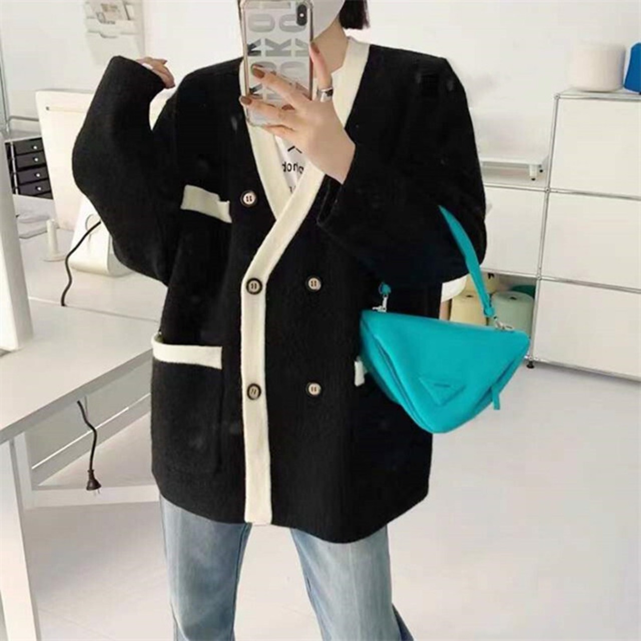 Nomikuma ダブルブレストセーターコート女性ヒットカラー長袖 V ネックニットカーディガン 2022 秋冬ニットトップス ロング オータム 秋物 ウィンター 冬物 Vネック kor83227983453