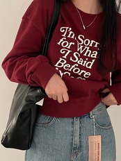 Nomikuma 文字プリントプルオーバートレーナー女性長袖 O ネックパーカートップ 2022 秋のジャンパー ロング オータム 秋物 Oネック kor51774693124