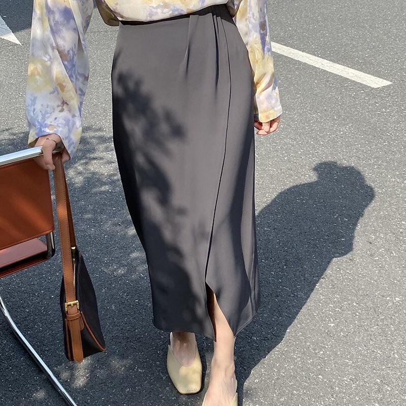 Nomikuma 不規則なスプリットスカート女性 2022 ボトムスシックな無地ウエストスーツスカート段 Faldas デ ソリッドカラー kor9548140922