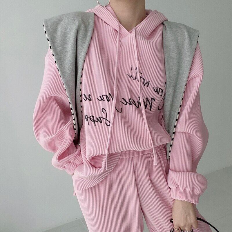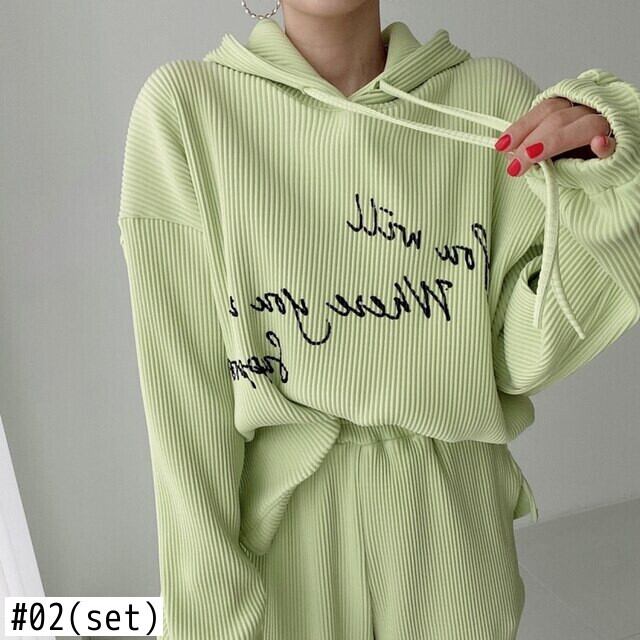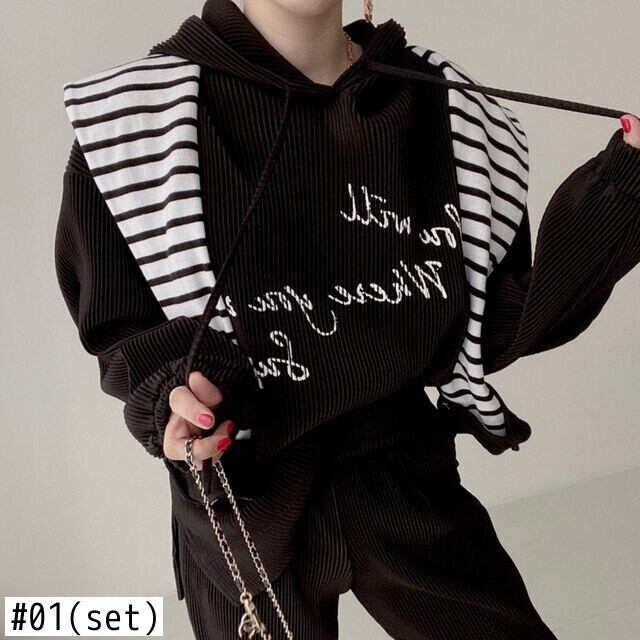 ノミクマ 2021 秋のスウェットセット 文字プリント長袖フーデッドスウェット+ウエストハーレムパンツ 6L473 ロング オータム 秋物 kor59424656144
