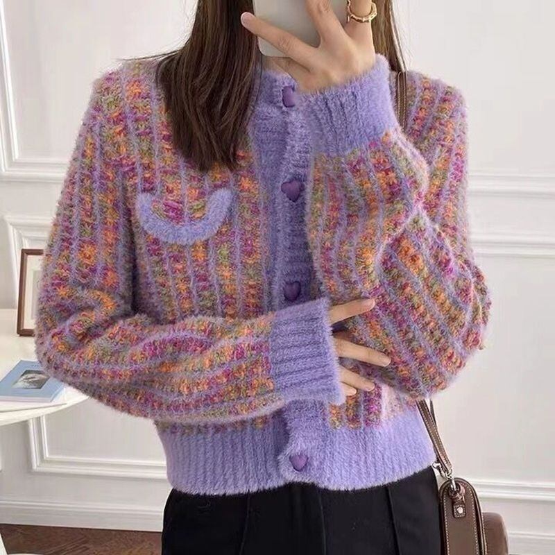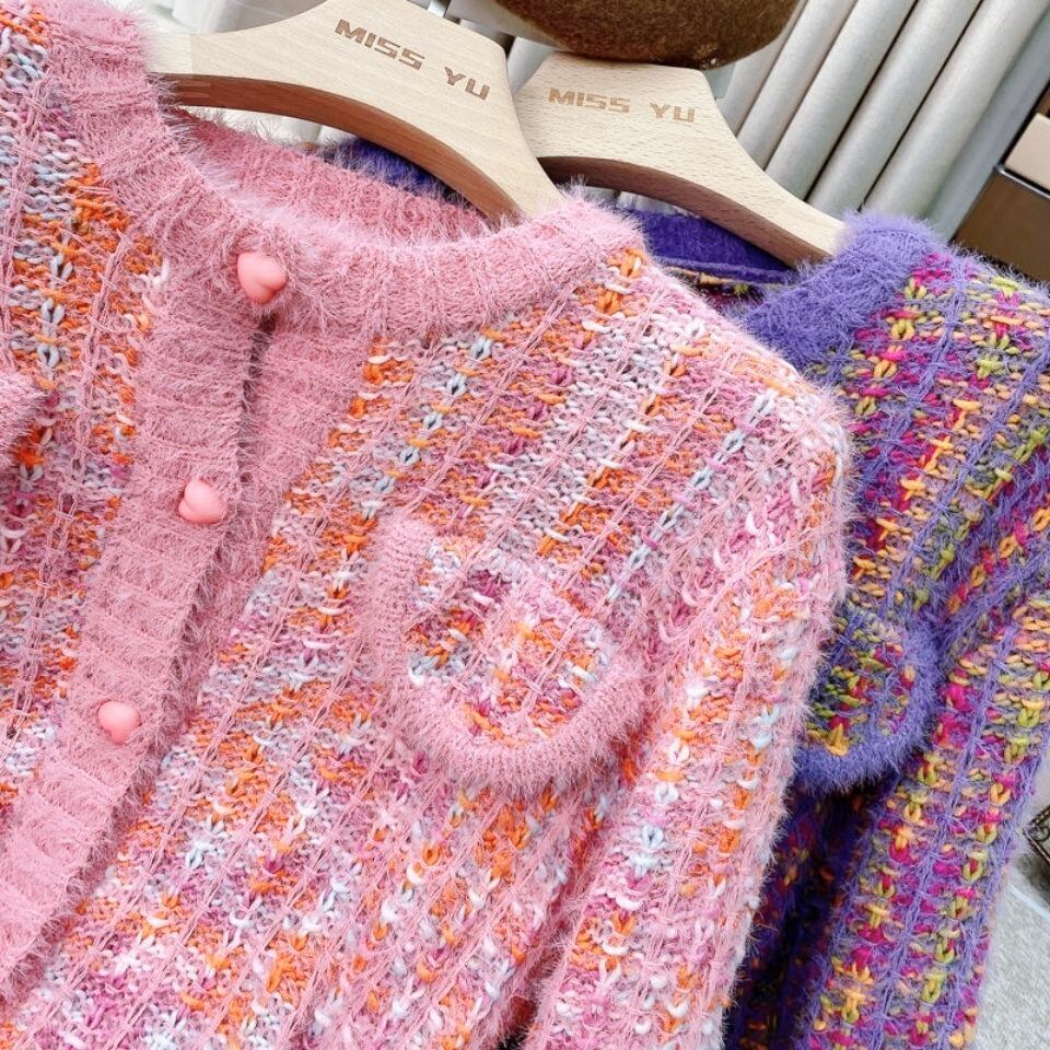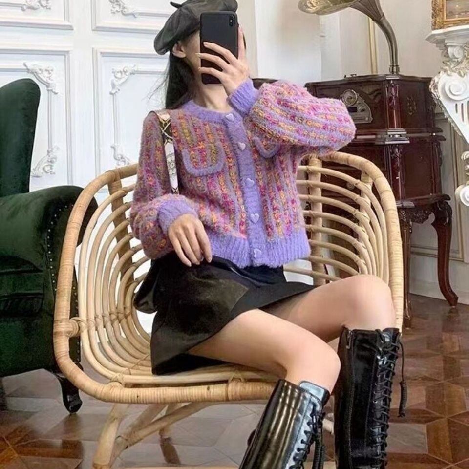 Nomikuma 2022 スウィート絞り染めニットカーディガン秋冬ショートセーター因果スタイル女性ニット O ネックコート 大人ガーリー キュート カジュアル オータム 秋物 ウィンター 冬物 Oネック kor41191337204