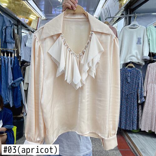 Nomikuma 2022 シックなビーズフリル V ネック長袖因果プルオーバートップス秋の女性ブラウスシャツ ロング オータム 秋物 Vネック kor14585438124