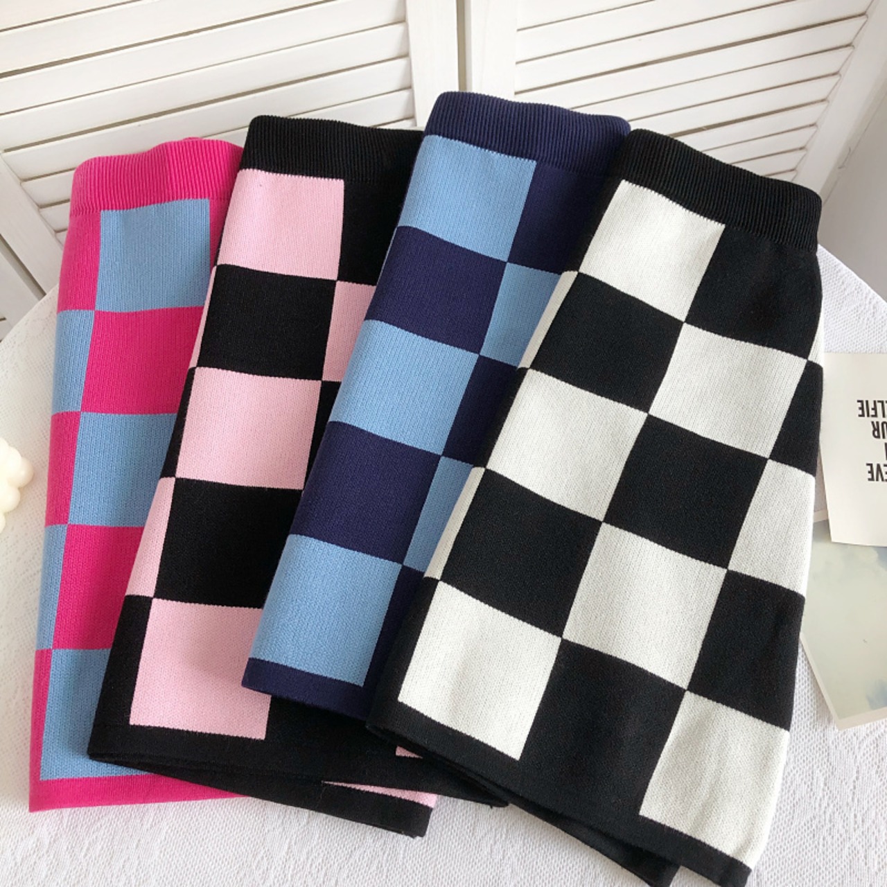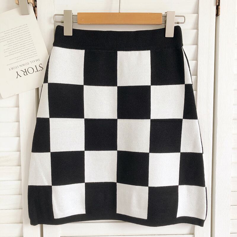 Nomikuma コントラストカラーチェック柄セータースカート女性 2022 秋冬ボトムスウエスト A ラインニットスカート オータム 秋物 ウィンター 冬物 Aライン kor71106142478
