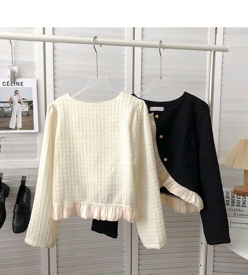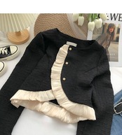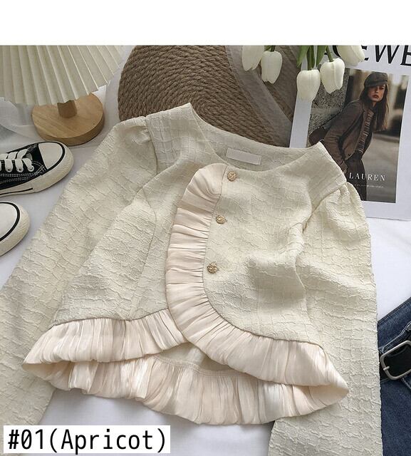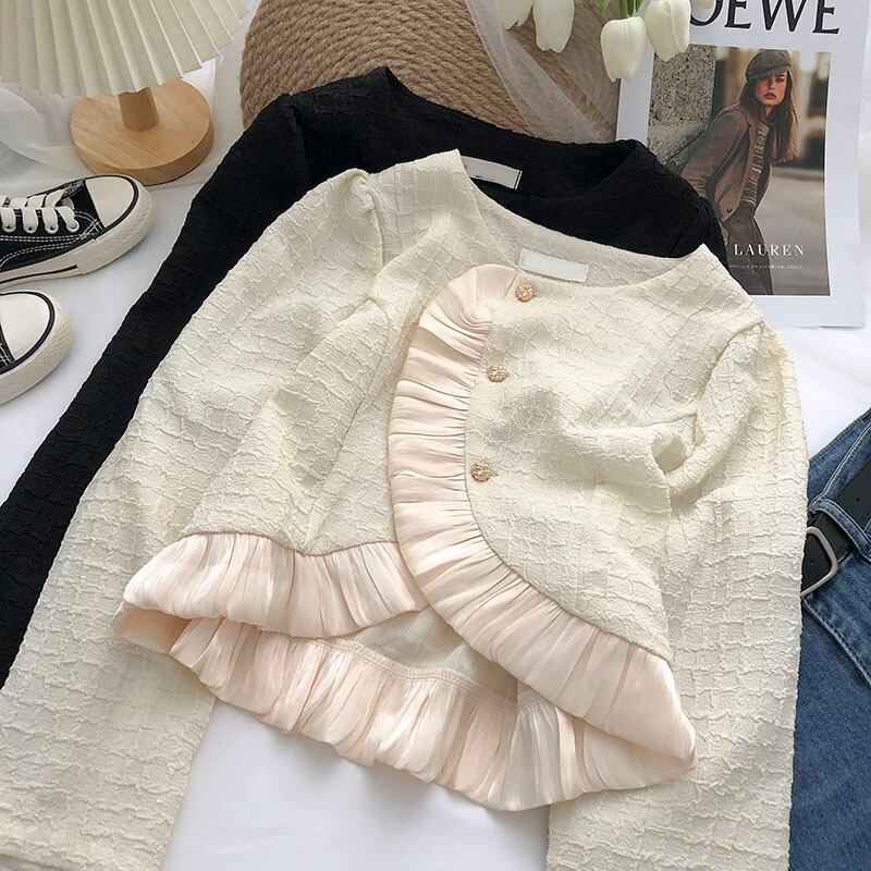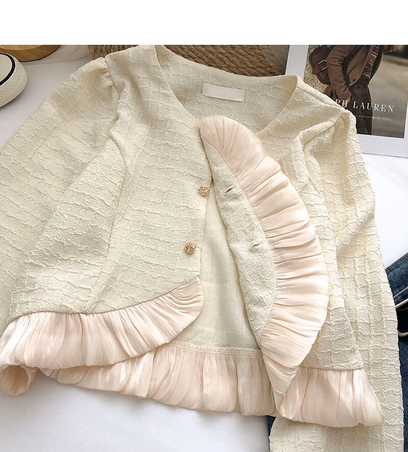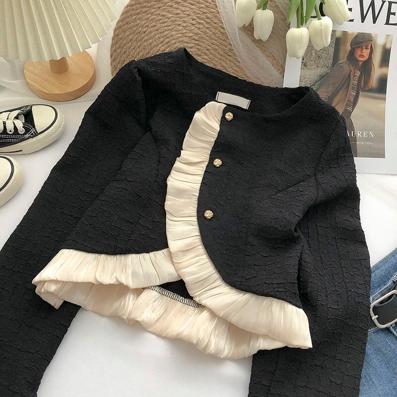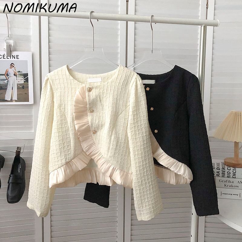 Nomikuma ガーゼパッチワークフリル不規則なシングルブレストショートコート女性秋 2022 長袖 O ネック生き抜く ロング オータム 秋物 Oネック kor18700123911