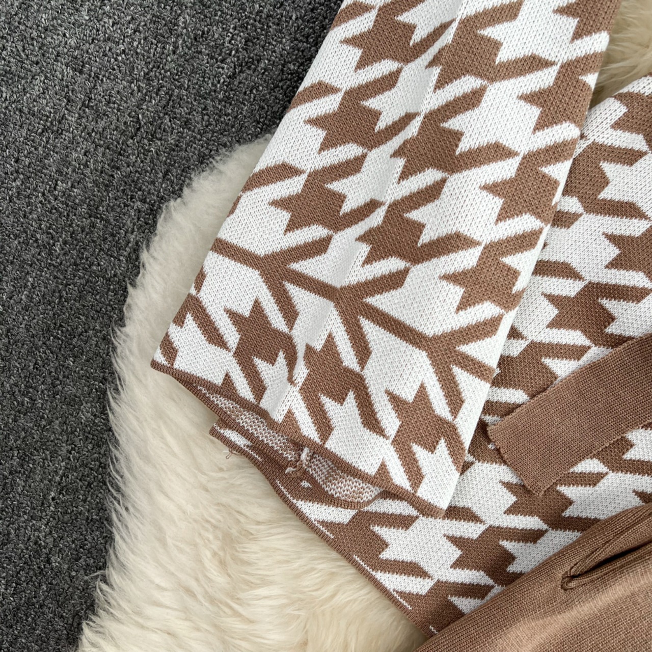Nomikuma ニットセット女性 V ネック鳥格子弓包帯カーディガンコート + ウエストワイドレッグセーターパンツ リボン Vネック ワイドパンツ kor51069607766