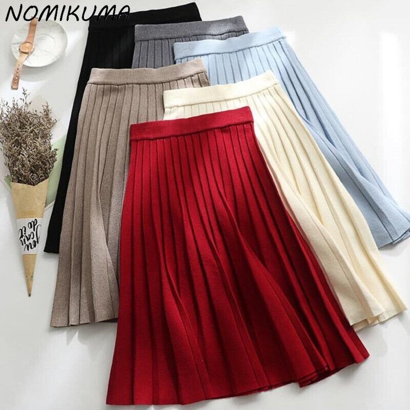 Nomikuma 厚手ニットプリーツスカート女性秋冬 2022 ボトムス因果ウエストセータースカート オータム 秋物 ウィンター 冬物 kor91990695353