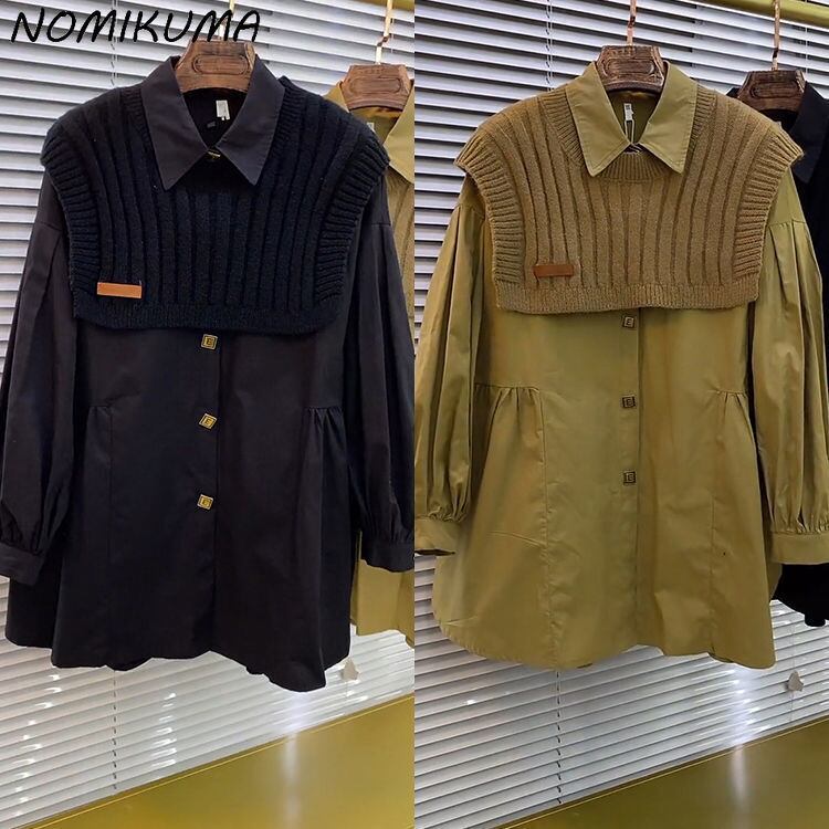 Nomikuma ニットベスト 2 個女性トップス因果ランタンスリーブシングルブレストブラウス 2022 春ピーターパン襟シャツ スプリング 春物 kor19295833226