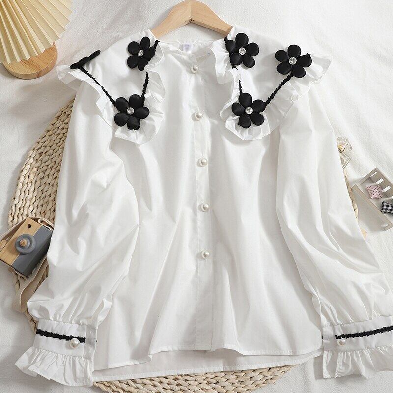 Nomikuma ヒットカラー 3D 花ブラウス女 ロング 長袖 シャツ 大人ガーリー スウィート キュート カジュアル フラワーデザイン kor80457697903