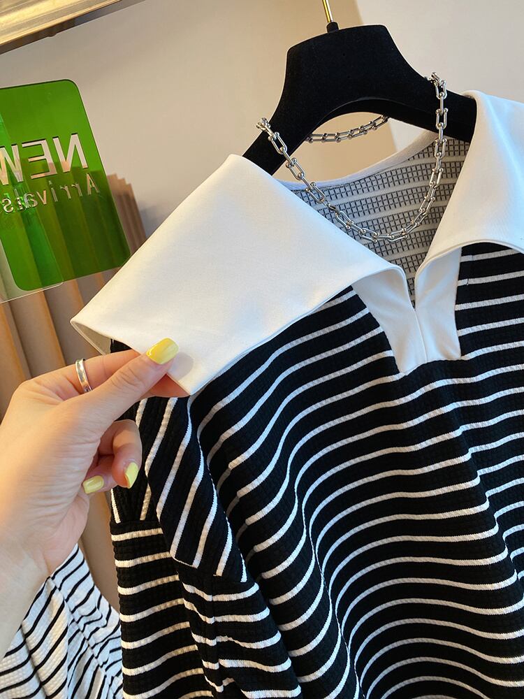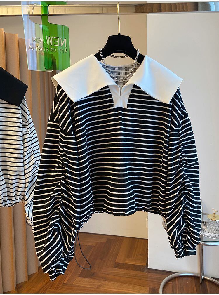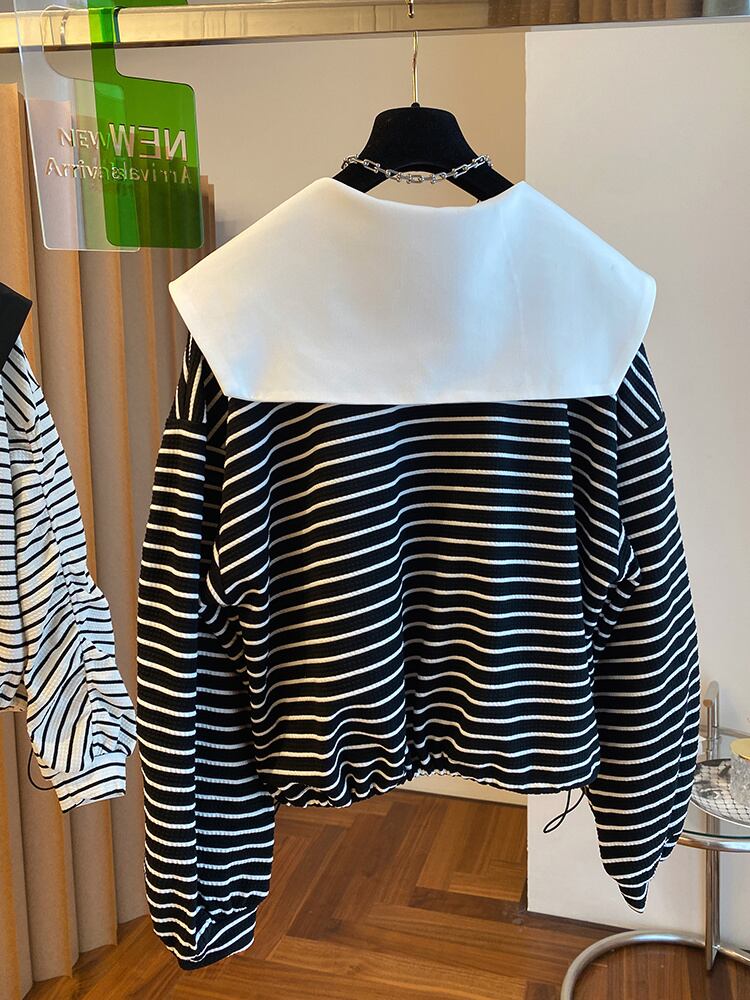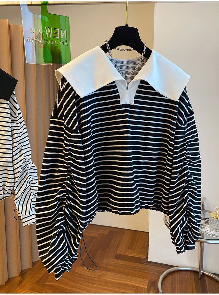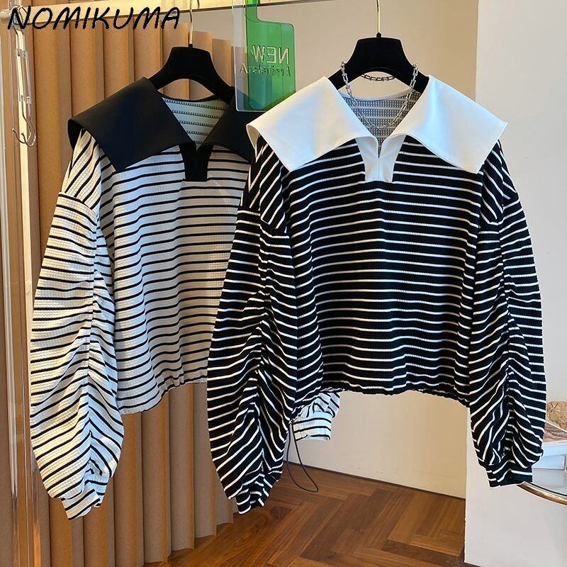 ノミクマ 因果 ストライプ プルオーバー トレーナー ターンダウンカラー 長袖 パーカー 2022年 巾着 ショートジャンパー ロング kor22128948040