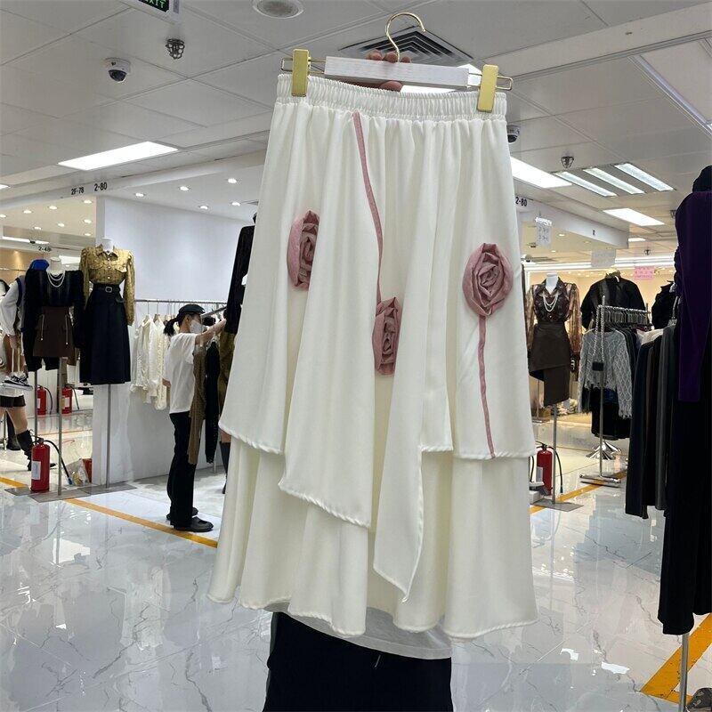 Nomikuma 3D 花ウエストスカート秋の不規則な因果 A ラインの女性のスカート段 Faldas Moda 2022 ボトムス オータム 秋物 Aライン フラワーデザイン kor74021501760