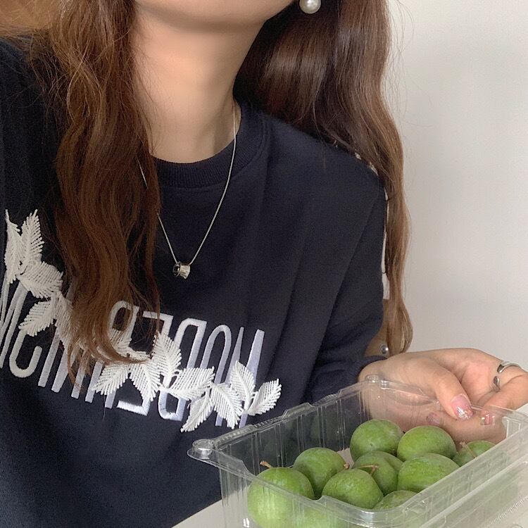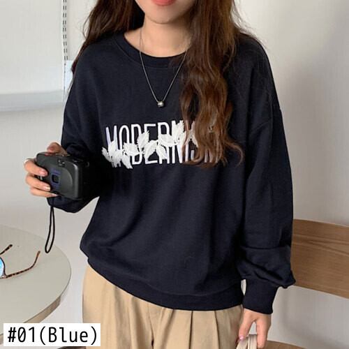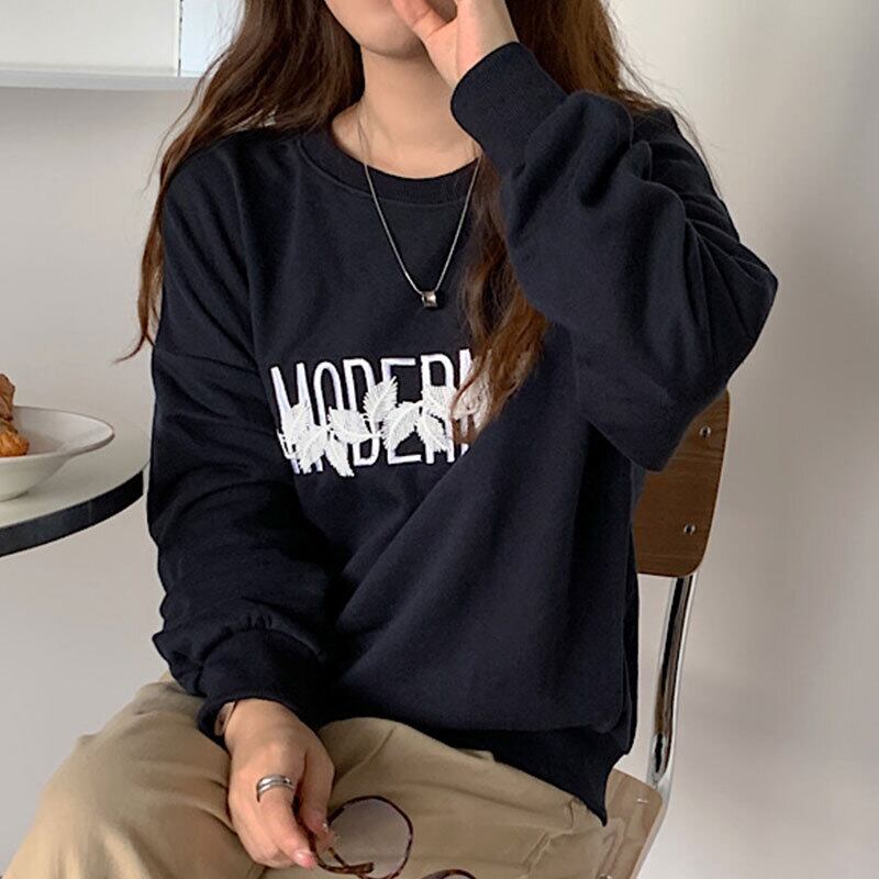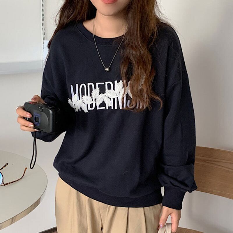 Nomikuma パーカー女性シックな秋 O ネック刺繍花レタープリント因果長袖プルオーバースウェットシャツ ロング オータム 秋物 Oネック フラワーデザイン kor74116995289