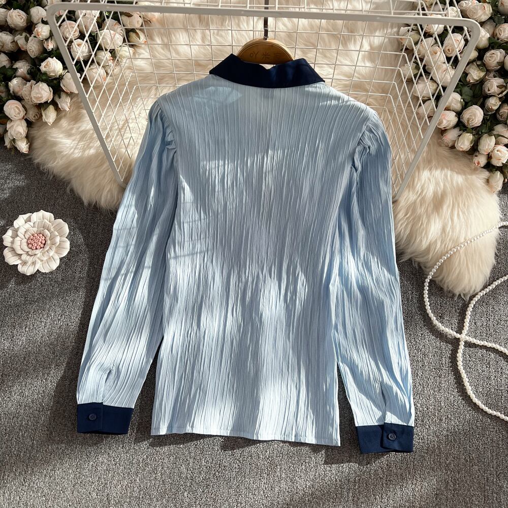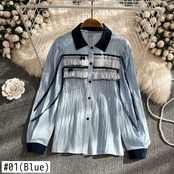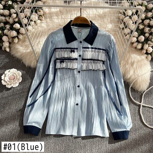 Nomikuma 女性ブラウスシックなレースフリルパッチワークトップス長袖ヒットカラーターンダウンカラーシャツ 2022 ロング kor27579572231