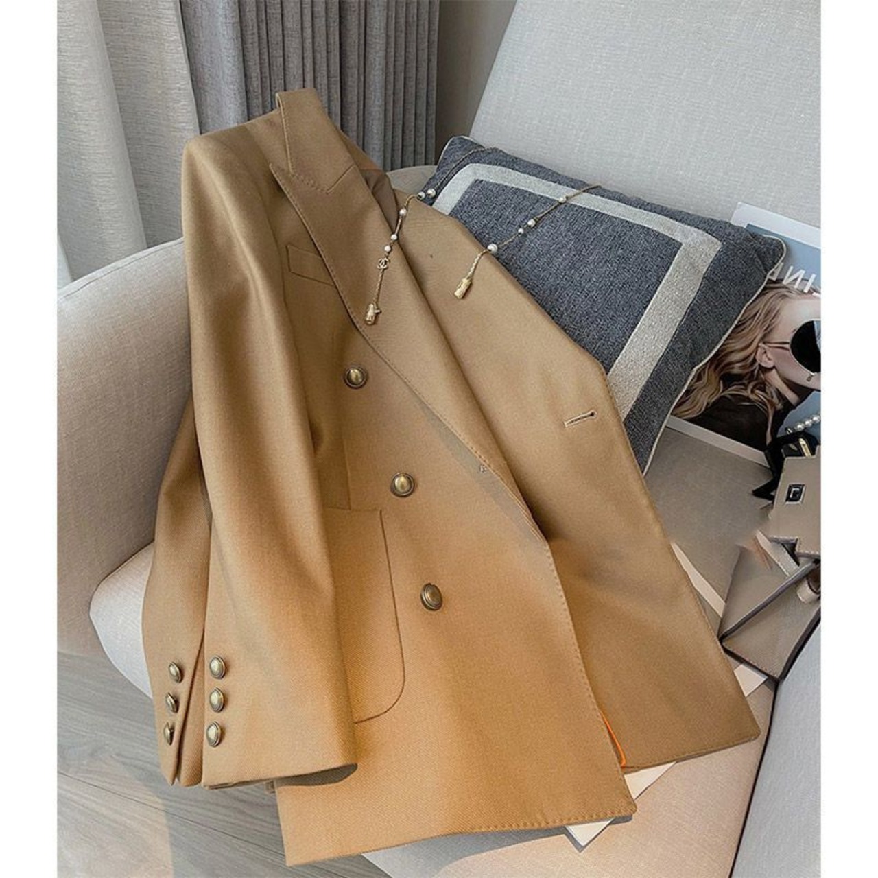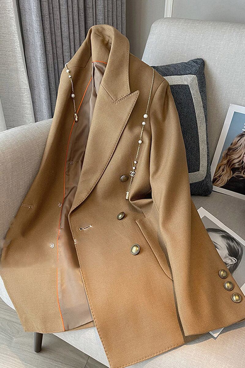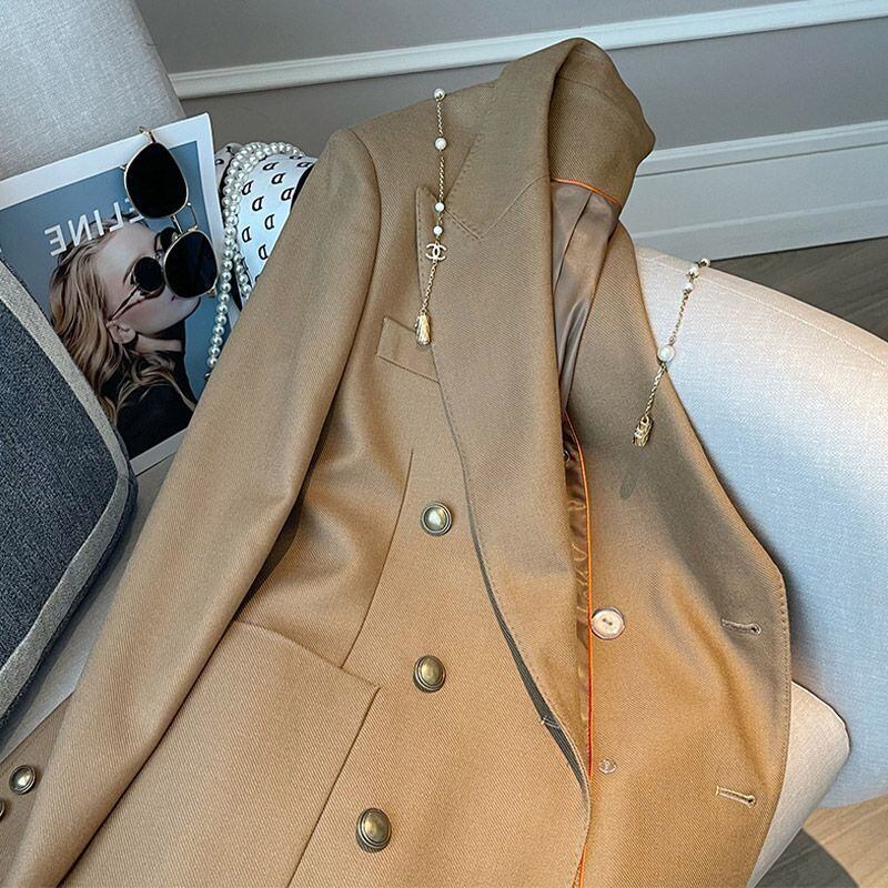 Nomikuma 2022 女性の秋のブレザーコートダブルブレストノッチカラースーツジャケットミディアムロングブレザー オータム 秋物 kor53483126744