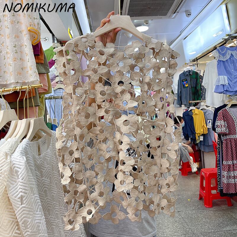 Nomikuma 刺繍中空アウトトップス因果ノースリーブ O ネックプルオーバーベスト 2022 夏の女性のタンクトップ サマー 夏物 Oネック kor31308594409