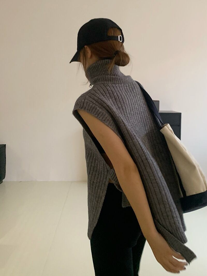 Nomikuma ジッパータートルネックノースリーブセータープルオーバー包帯 2022 秋ニット Ves 因果女性チョッキ オータム 秋物 kor93868469829