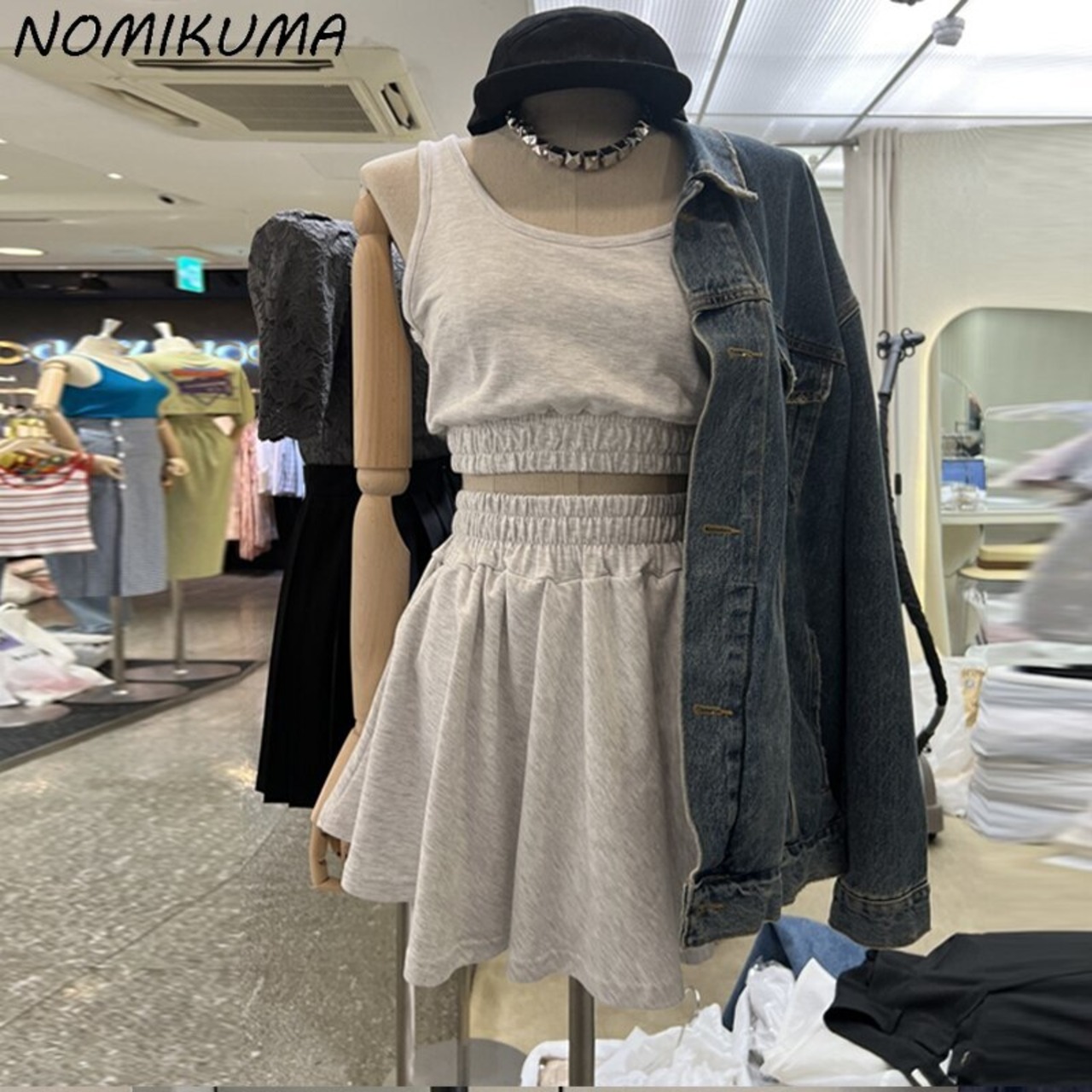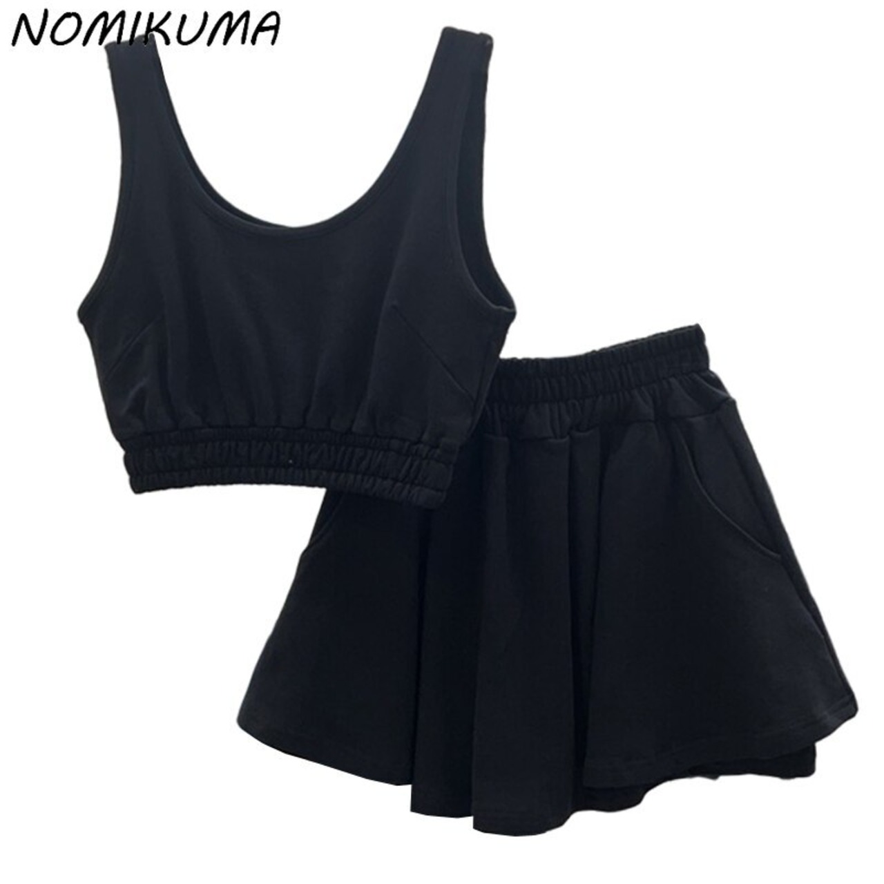 Nomikuma 因果汗セット女性 2022 夏ツーピーススーツセクシーなスリムソリッドクロップトップベスト + ウエスト A ラインショーツスカート サマー 夏物 ブルマー Aライン ソリッドカラー kor17800251868