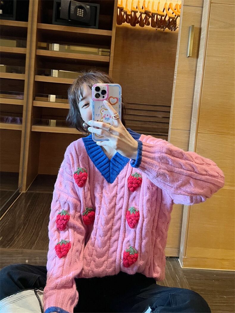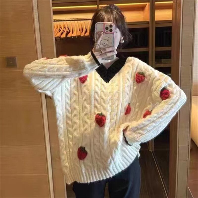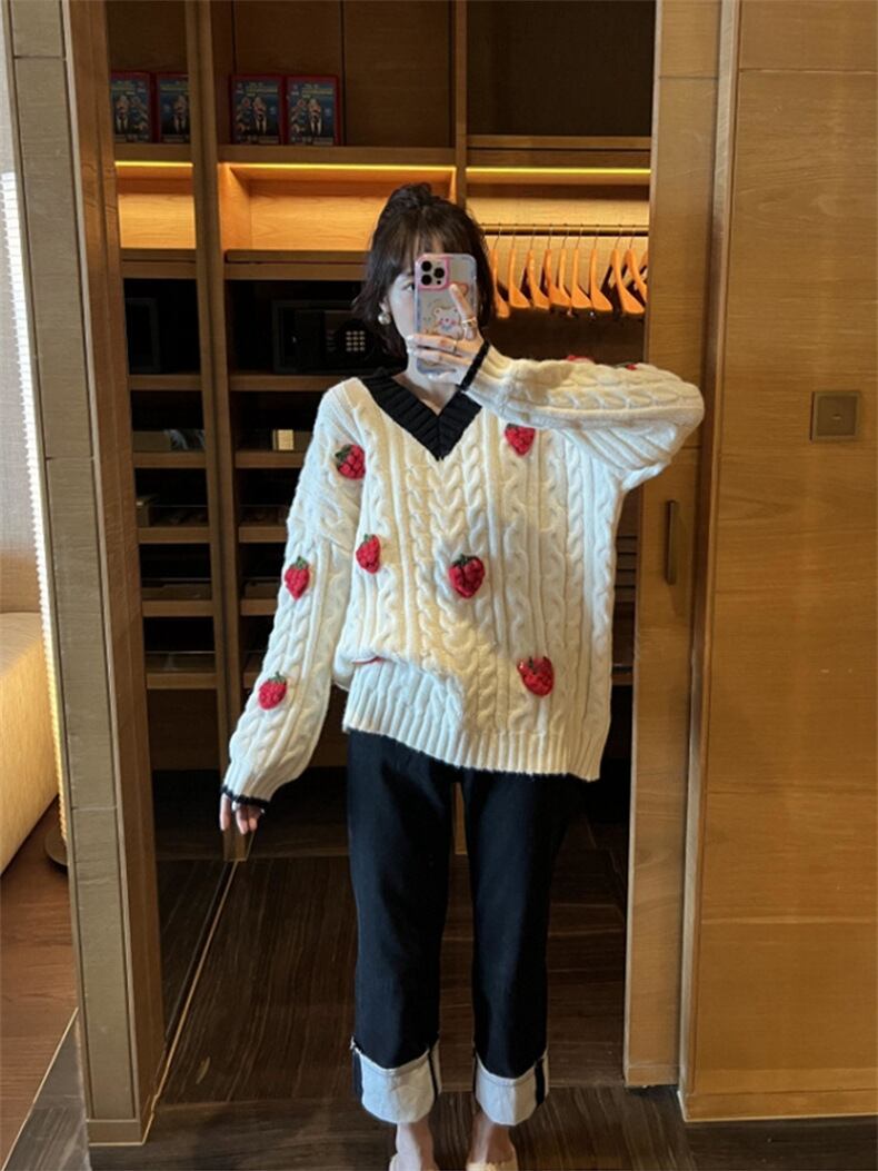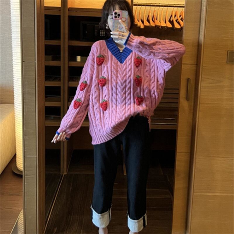 Nomikuma スウィートヒットカラー V ネック長袖女性セーター 2022 秋冬プルオーバーニットトップス ロング 大人ガーリー キュート カジュアル オータム 秋物 ウィンター 冬物 Vネック kor51771876554