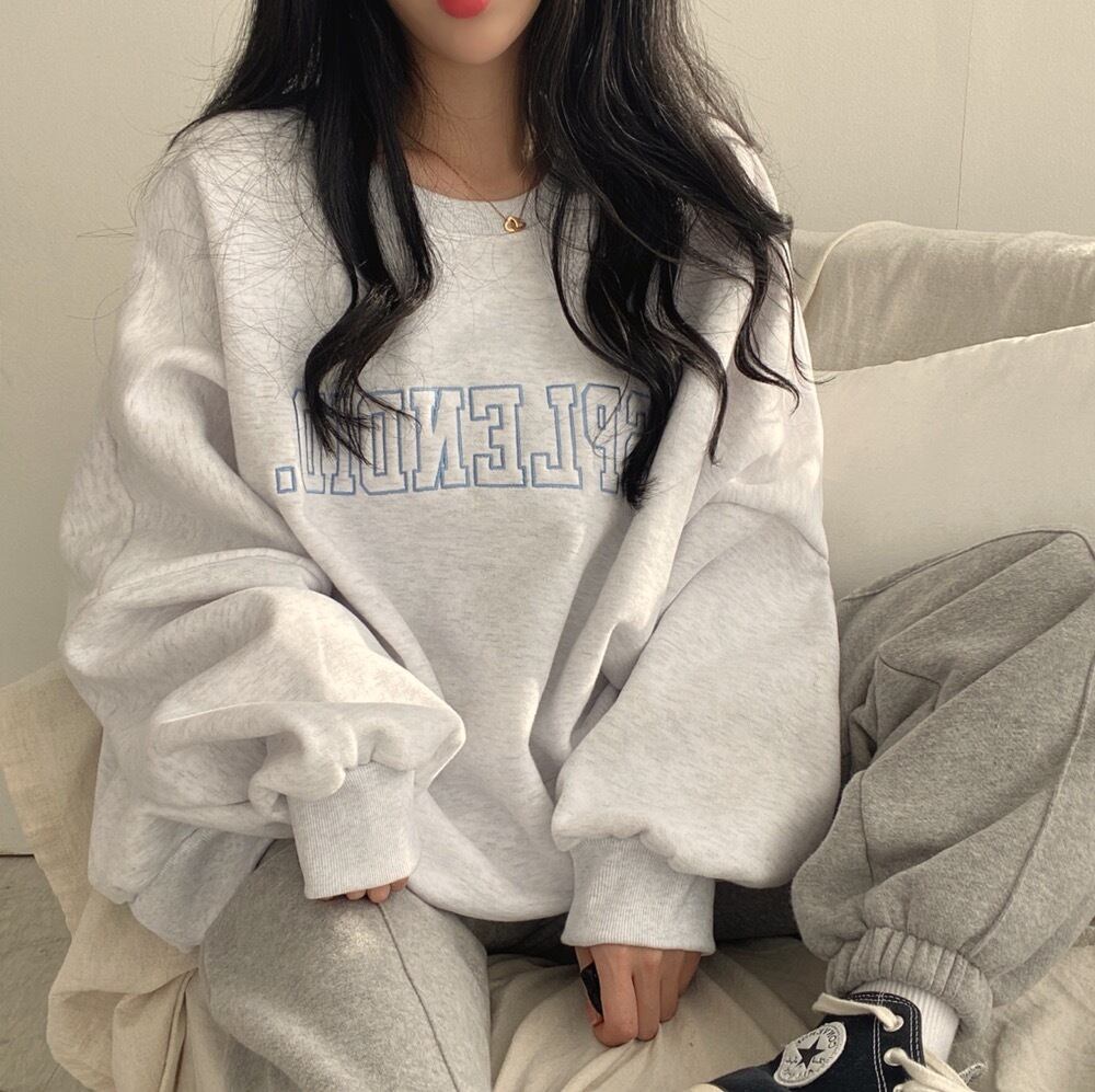 Nomikuma Letetrs 刺繍フリース秋冬スウェット因果長袖 O ネックパーカートップ 2022 女性ジャンパー ロング シャツ オータム 秋物 ウィンター 冬物 Oネック kor78492849874