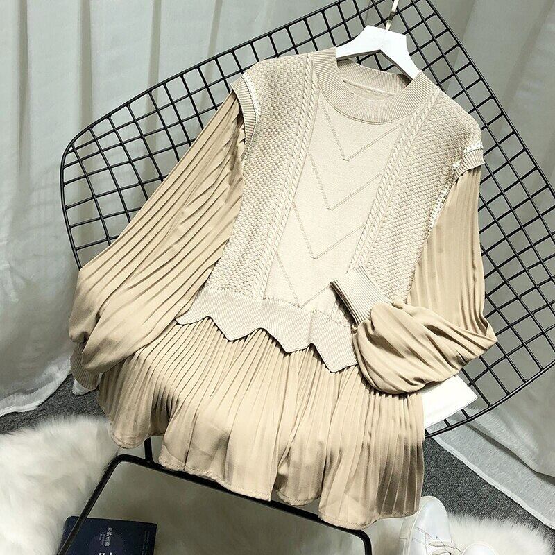 ノミクマ プルシフォン パッチワーク ランタンスリーブ ニットセーター 秋冬 プルオーバー ニット オータム 秋物 ウィンター 冬物 kor67513768611