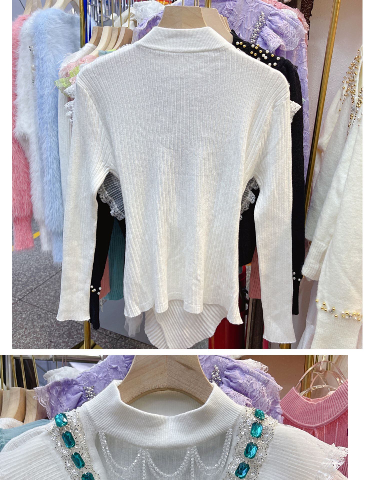 ノミクマ ビーズくり抜きOネックセーター ダイヤ フリル パッチワーク ニット 2022秋冬 ニットトップス オータム 秋物 ウィンター 冬物 kor12368889371