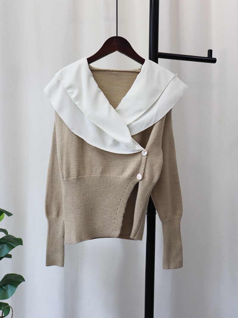 Nomikuma シックなダブルフリルターンダウン襟ニットカーディガン秋冬女性セーターコート 2022 ニットジャケット オータム 秋物 ウィンター 冬物 kor77120208422