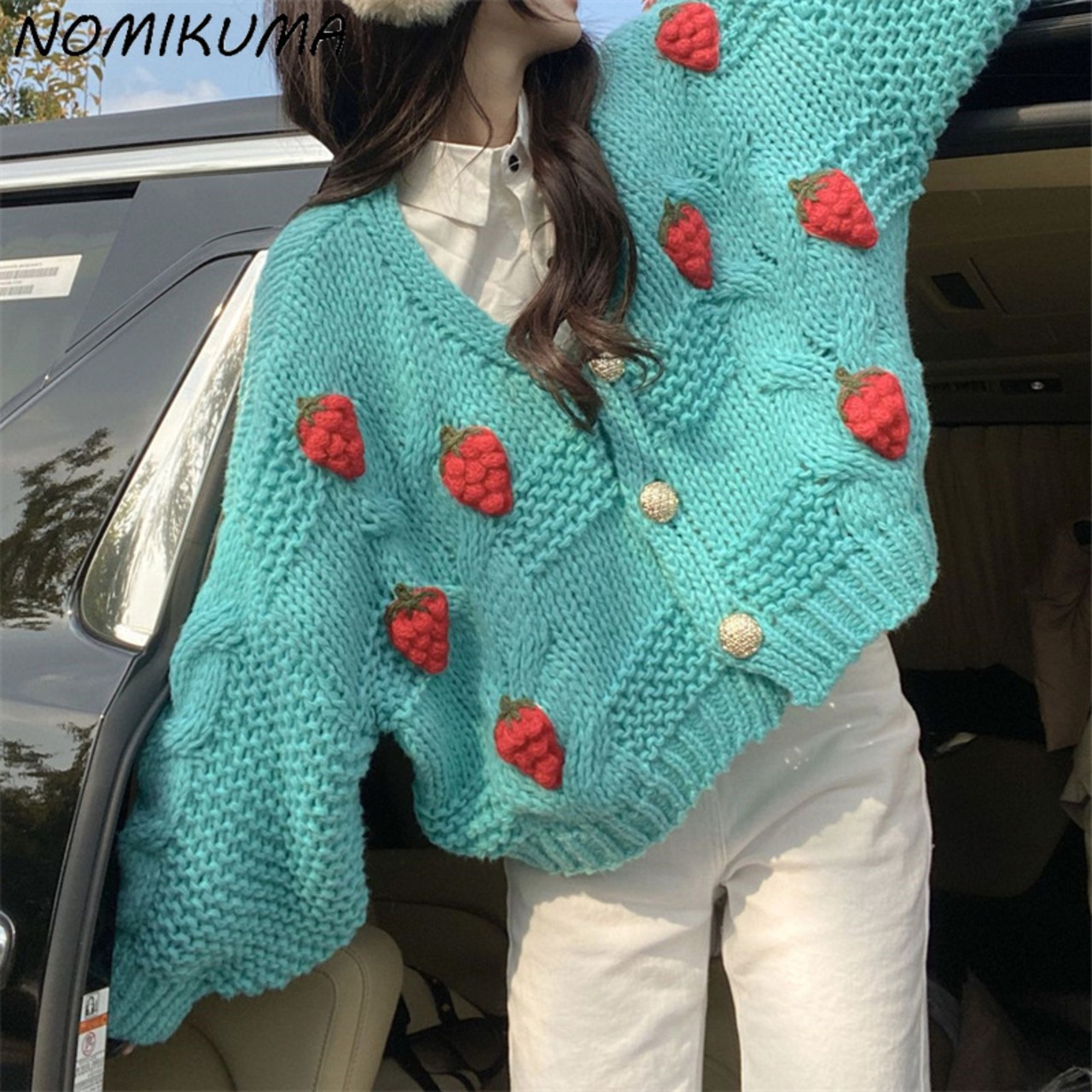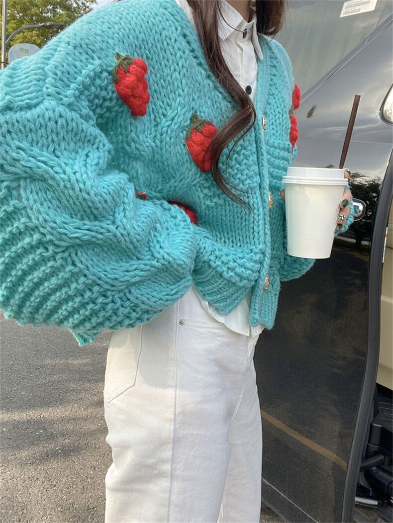 ノミクマ 甘いちご刺繍 セーターコート カジュアル 長袖 Vネック ニットカーディガン 2022秋冬 ニット ロング 大人ガーリー スウィート キュート オータム 秋物 ウィンター 冬物 kor61781352531
