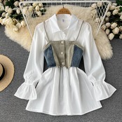 Nomikuma フレアスリーブ ブラウス ドレス + デミン スリング ショート ベスト レディース 2 点セット レディース 衣装 2022 秋 2 点 オータム 秋物 kor57905294232