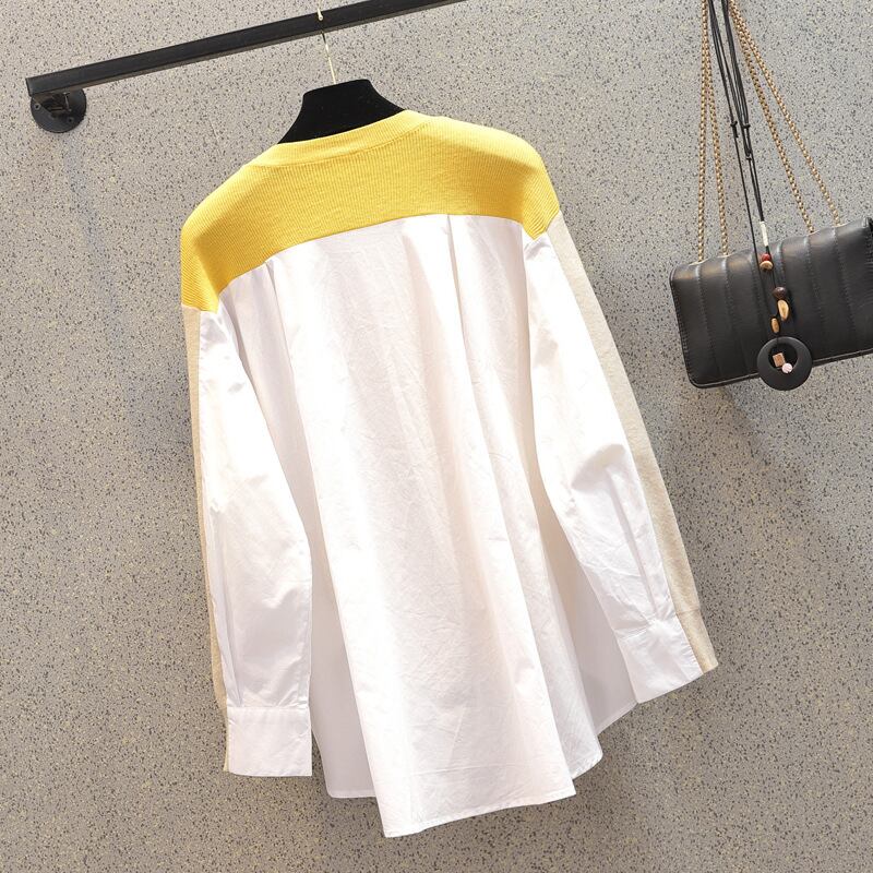 ノミクマ 因果ブラウス パッチワーク ニット トップス 長袖 Vネック プルオーバー 2021秋 セーター セーター 6K730 ロング オータム 秋物 kor18726871840