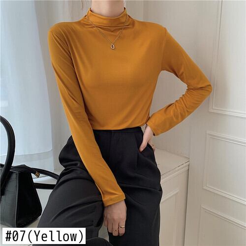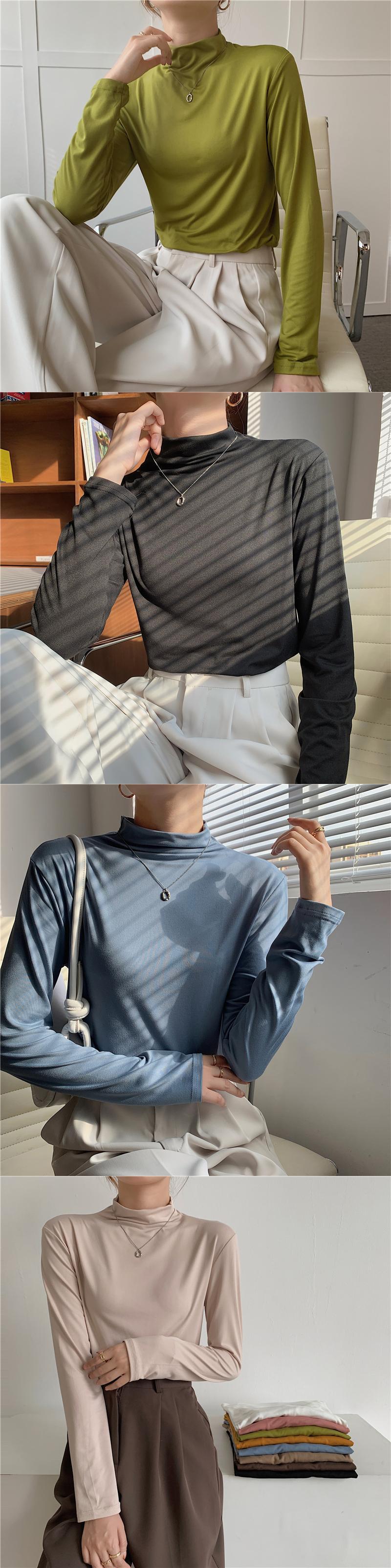 ノミクマハーフタートルネックスリムベーシック長袖Tシャツ女性2022秋冬無地グラフィックTシャツ ロング オータム 秋物 ウィンター 冬物 ソリッドカラー kor88319053393