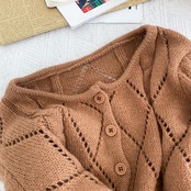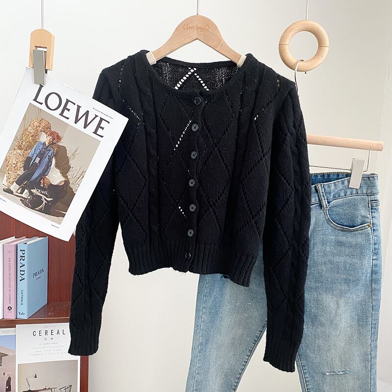 ノミクマ Oネック シングル ビースト アーガイル ツイスト 長袖 ショート ニット セーター カーディガン コート トップス レディース 2022 ロング kor60902316834